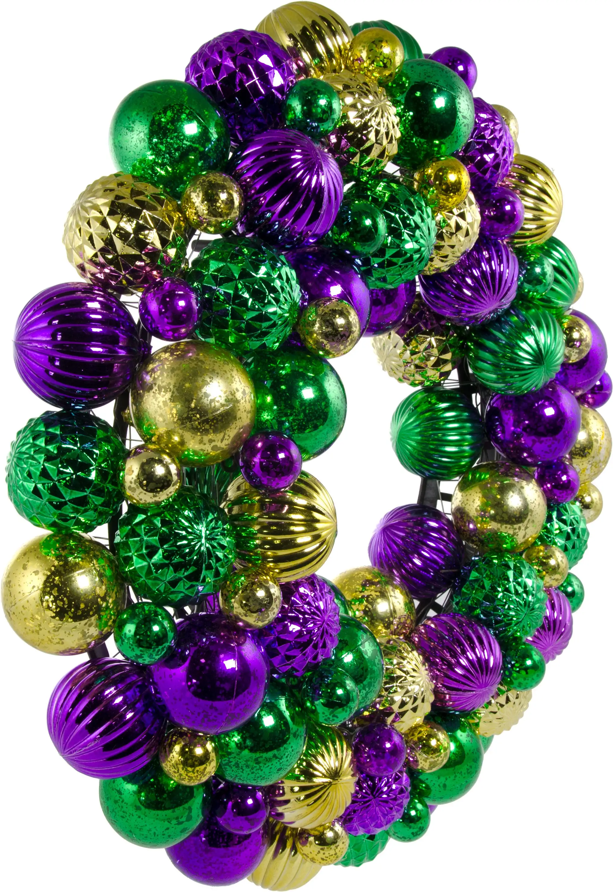 16" Mardi Gras Ball Wreath: Antique Purple, Gold & Green
