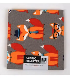 18" x 20" Foxes on Gray Novelty Cotton Fabric Quarter 1pc