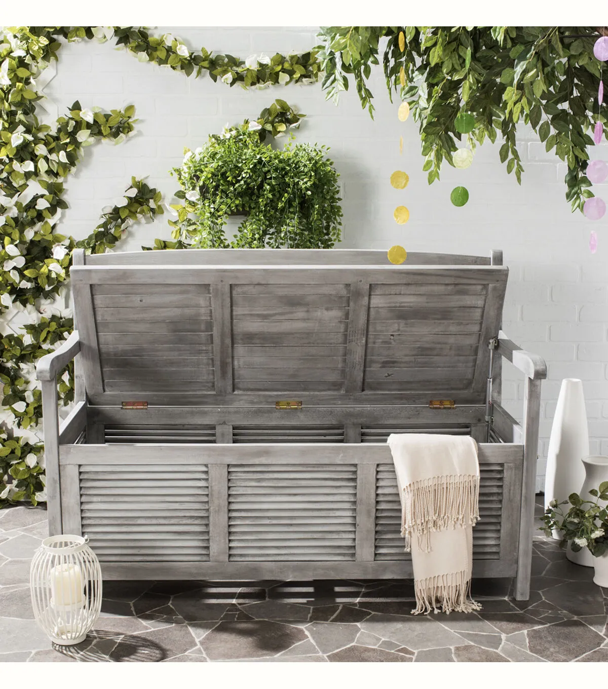 Safavieh 50" x 24" Gray Brisbane Outdoor Storage Bench