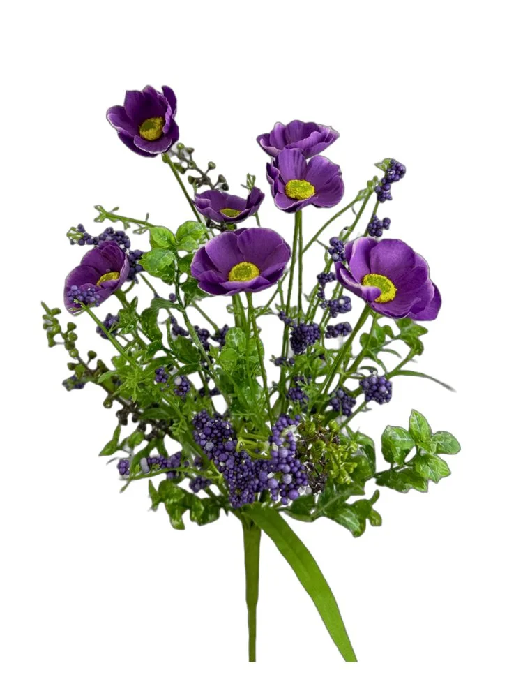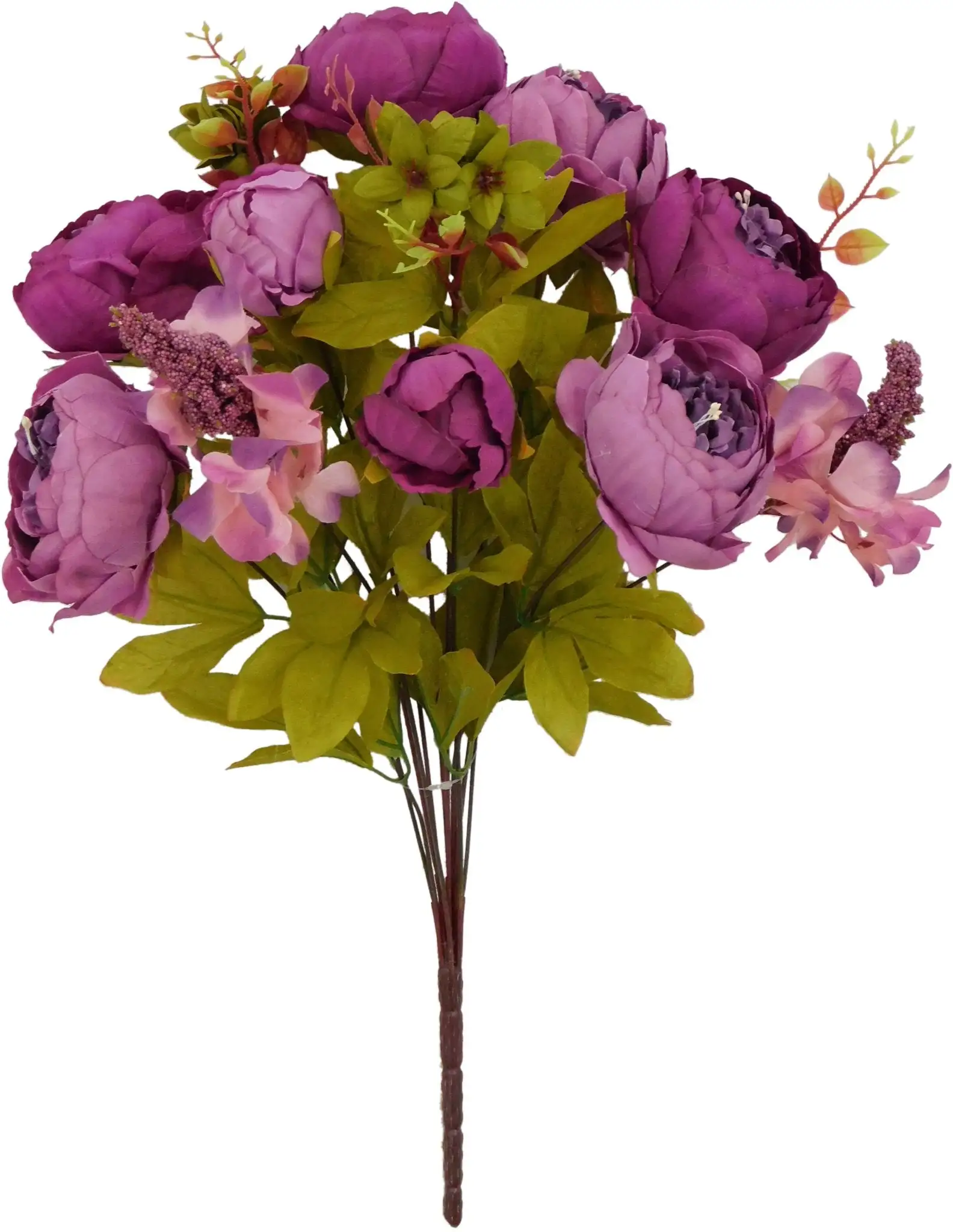 24" Fabric Flower/Eva Leaf Spray: Black/Hot Pink