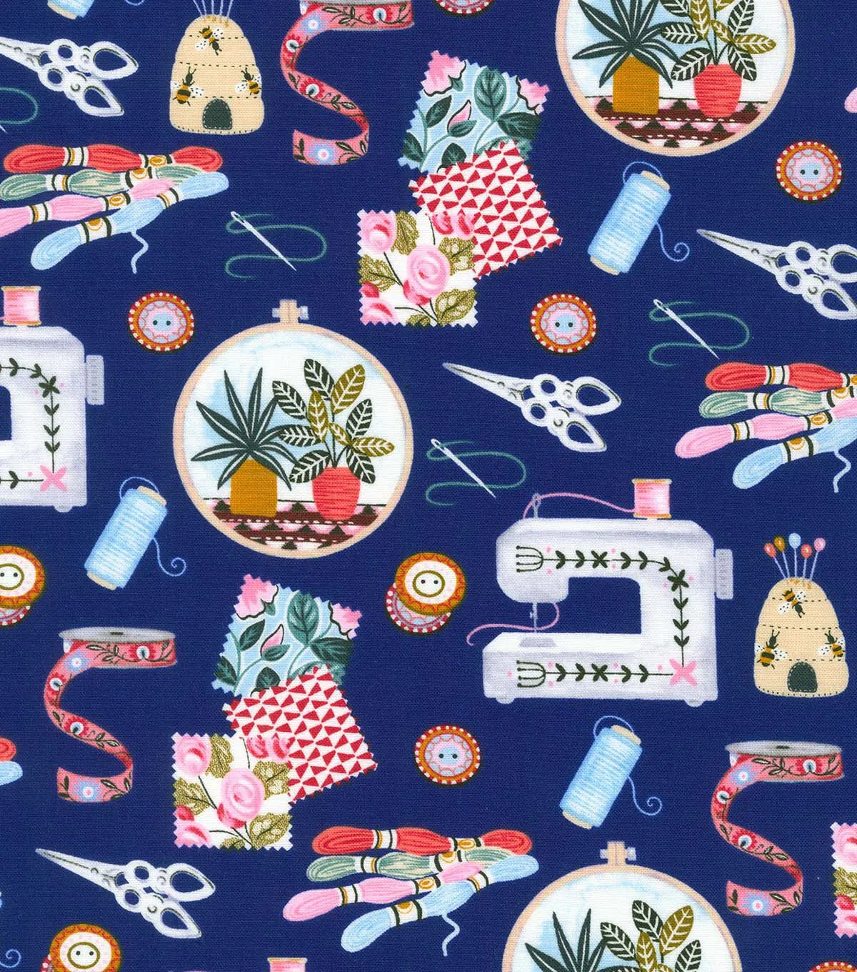 Robert Kaufman Blue Sew Crafty Novelty Cotton Fabric