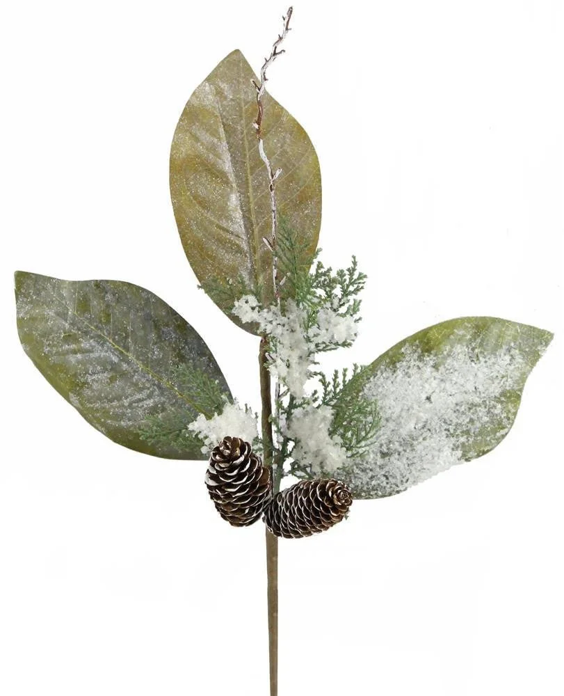 18" Snowy Magnolia Leaf/Cedar/Cone Pick