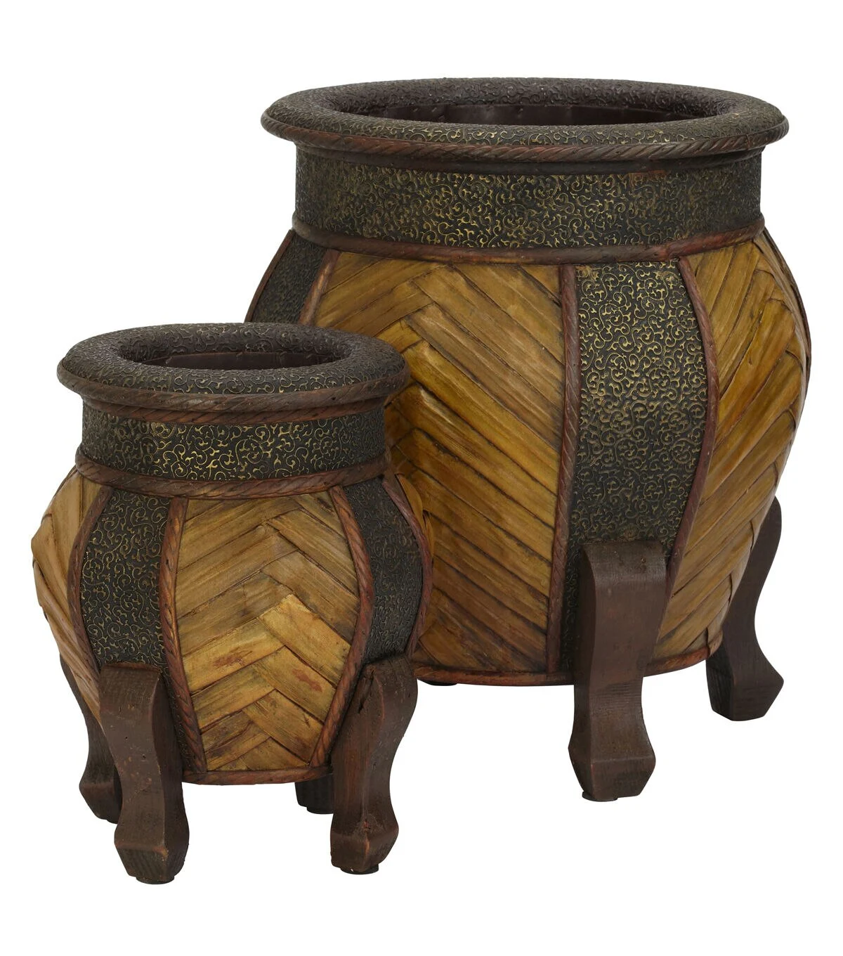 Nearly Natural 2ct Decorative Rounded Wood Planters