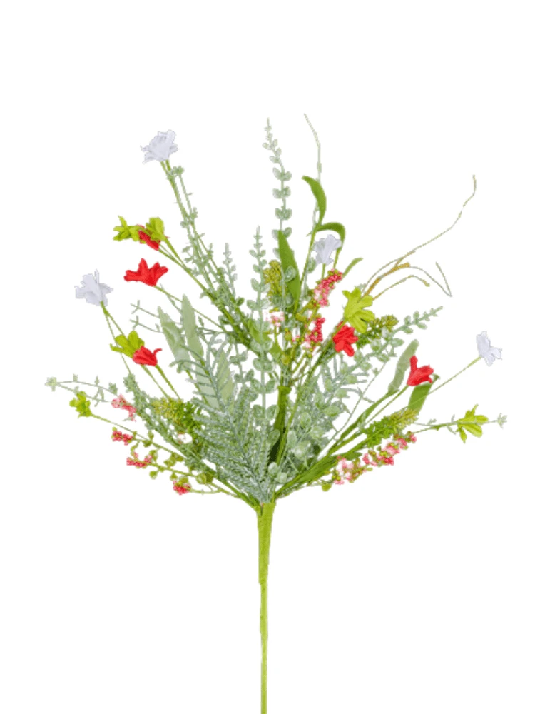 24" Fabric Flower/Eva Leaf Spray: Red/Green/White