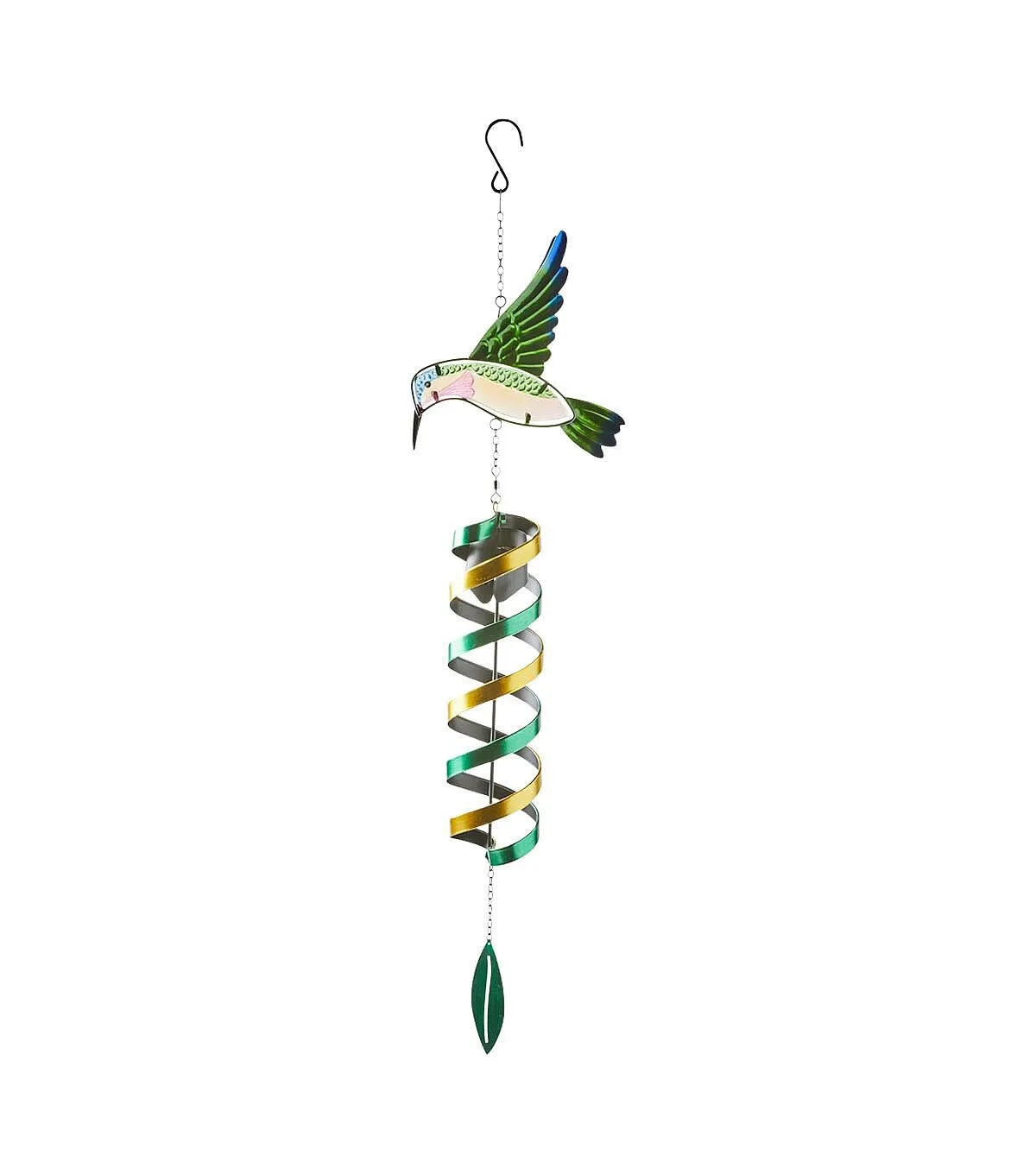 31" Spring Green Glass Hummingbird Spinner Windchime by Place & Time