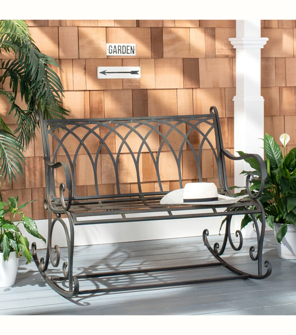 Safavieh 43" x 33" Black Rust Ressi Rock Outdoor Garden Bench