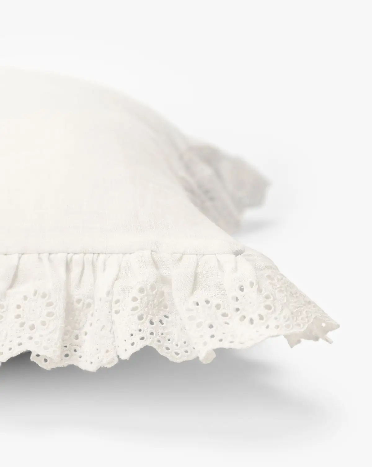 The Delilah Broderie Trim Pillow Cover is made from white linen with a delicate broderie border. Designed in collaboration with Loeffler Randall, this piece brings a considered aesthetic to your home with every detail.