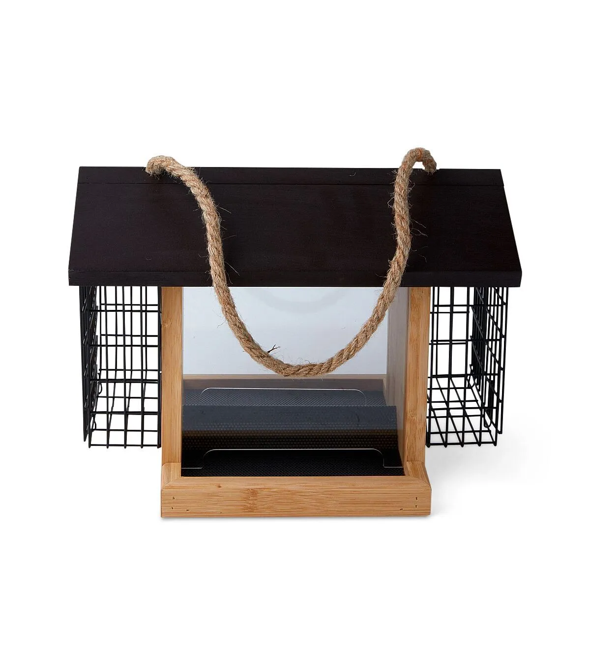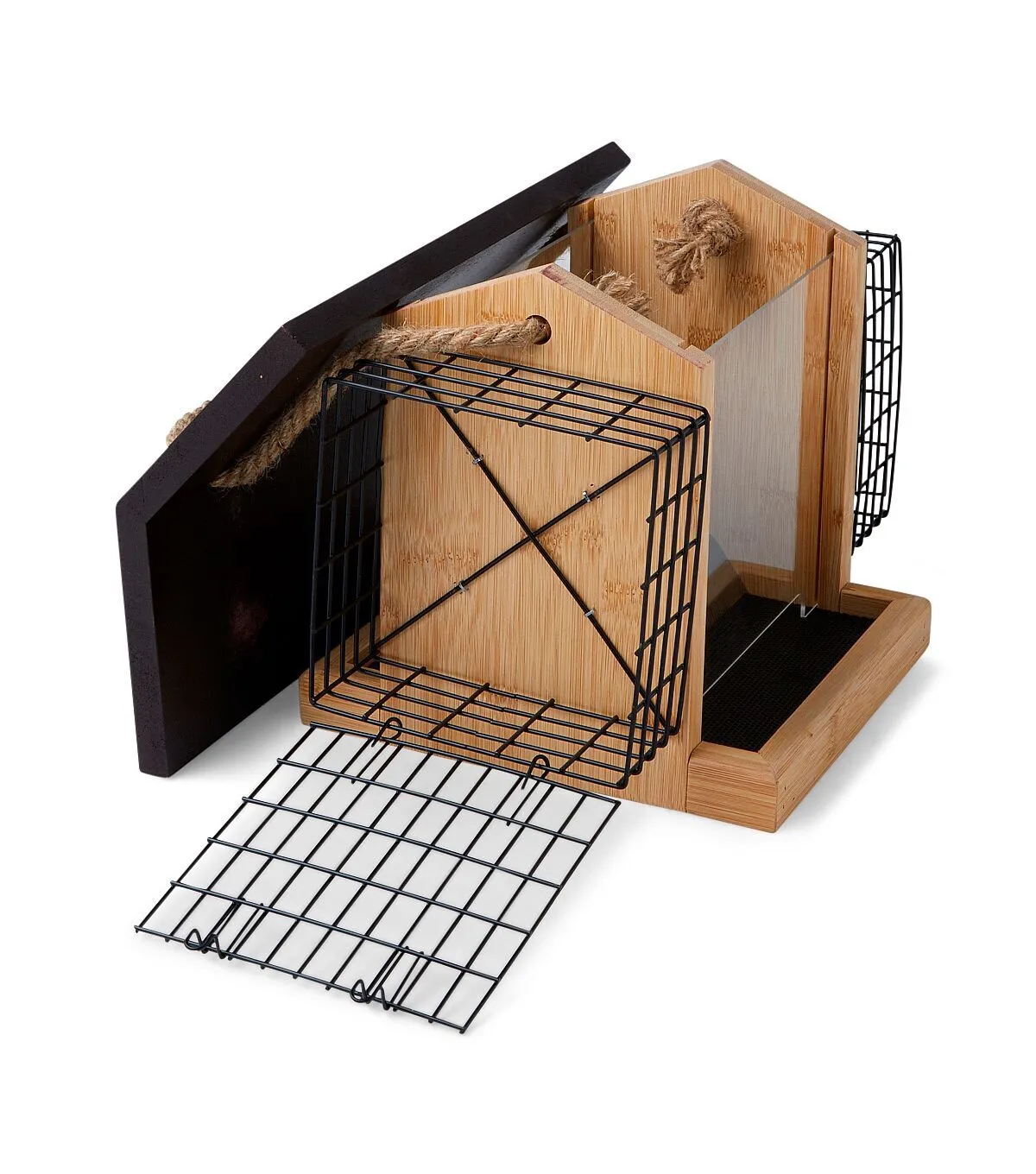 Give the fleeting birds food by hanging the Spring Bamboo Two Sided Bird Feeder by Place & Time in your front yard. This bird feeder is made of bamboo wood and steel wire. It can hold seeds and suet cakes for the birds. A string loop at the top makes it easy to hang. You can also team it with a birdhouse and give them as a housewarming gift to a friend.