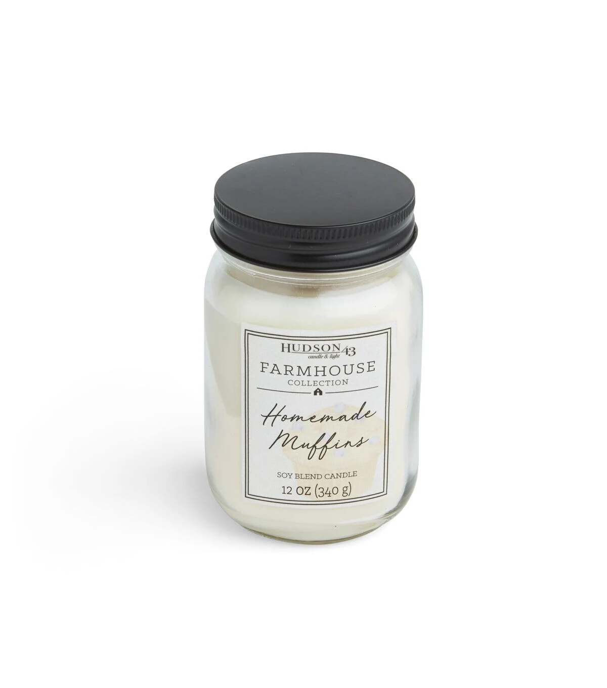 The Hudson 43 Farmhouse Collection Homemade Muffins Mason Jar Candle offers a modern yet rustic fragrance in a beautiful package that goes with any decor. This 12-ounce clear mason jar comes with a white wax candle and a matte black lid that screws on. It includes the notes of almond, honey, oats and butter.