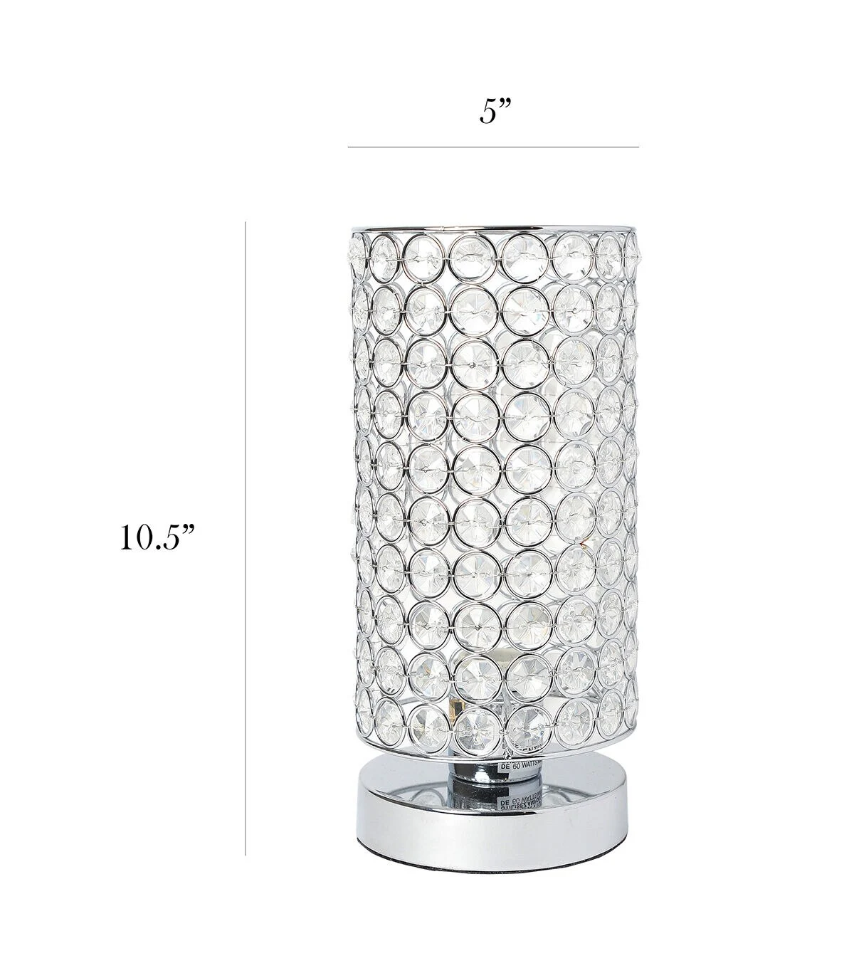As part of Elegant Design's Elipse collection, this stunning crystal and chrome table lamp is designed to offer a feel of elegance and glamour to any room in your home and/or place of business. A cylinder of K5 crystals built on a solid raised chrome base casts a warm, sparkling glow during use of the lamp. Like many of the other items in this collection, these pieces will upgrade your basic lamp to embody a more modern and contemporary feel to your decor. Combine this lamp with any of the others in the Elipse collection for mix and matching pieces!