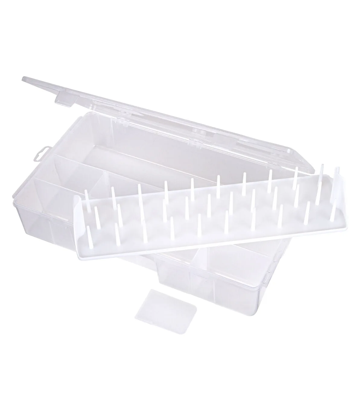 Sewing enthusiasts can now store all their essential tools and supplies in the ArtBin Solutions Sewing/Thread Box. This sewing storage comes with a removable tray to hold sewing threads of all popular sizes and shapes. Store both small and large sewing supplies in the various sections of the fixed front compartments. Made of translucent plastic, this storage box gives you a clear view of its contents.