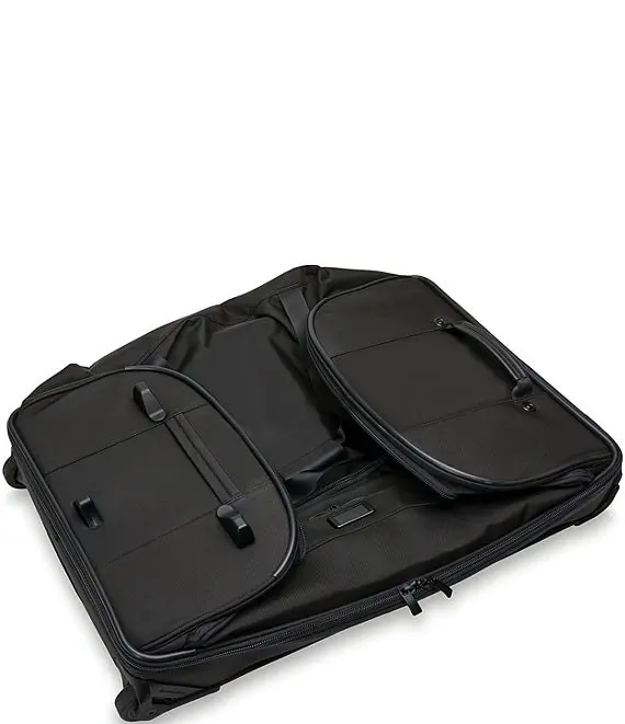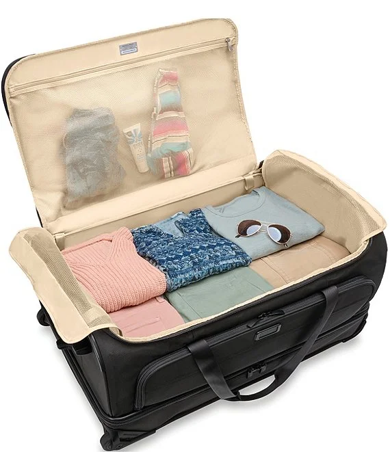 - Large duffel section features garment-securing panels to keep clothes in place, minimizing wrinkling and shifting while in transit