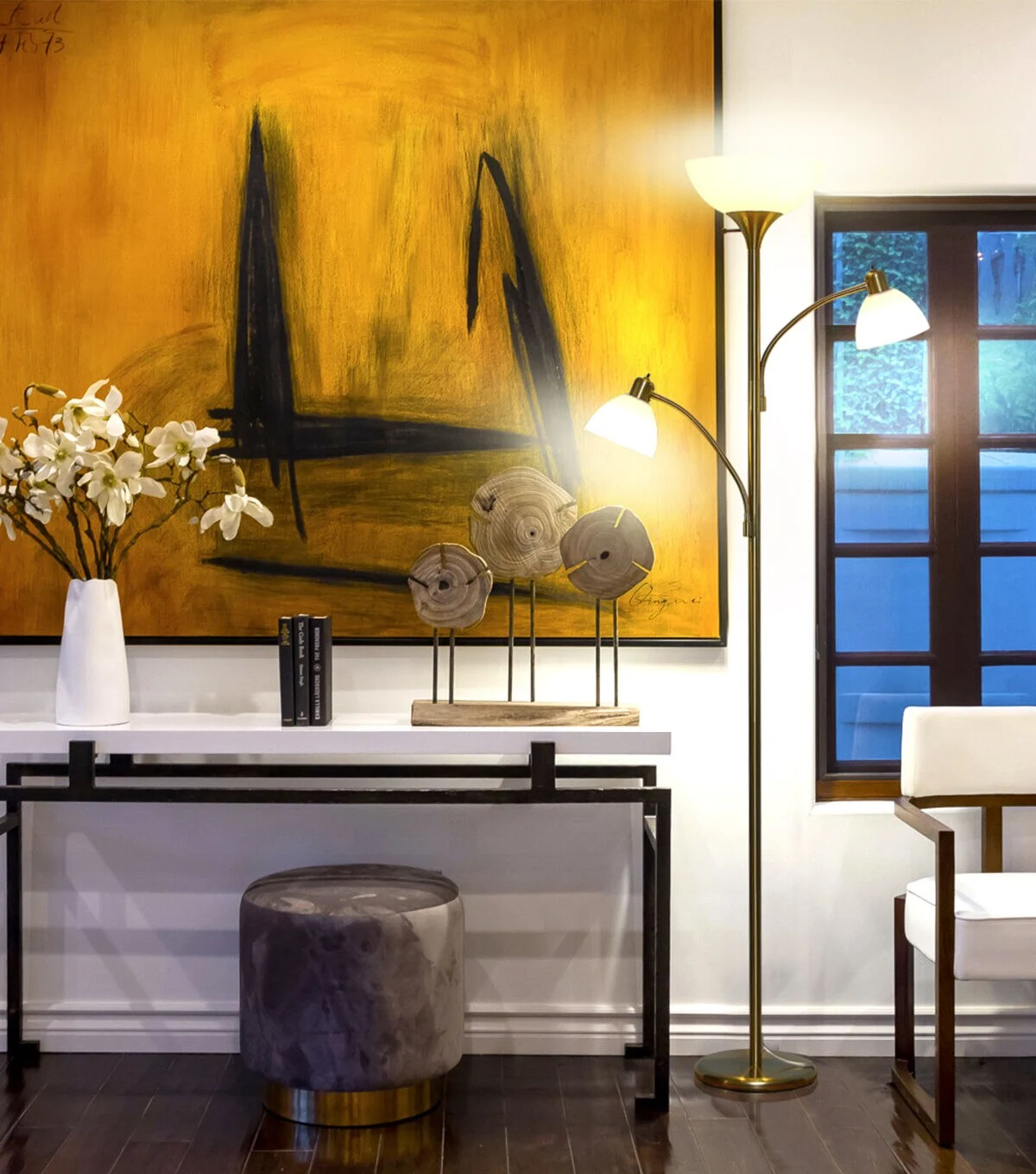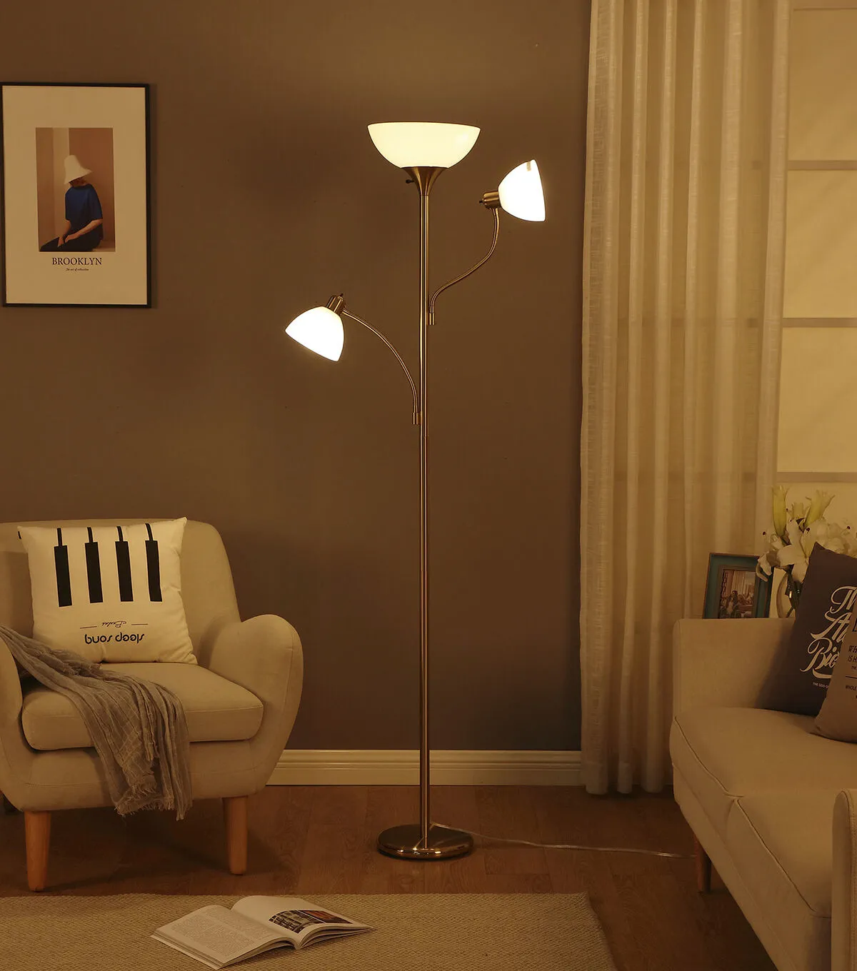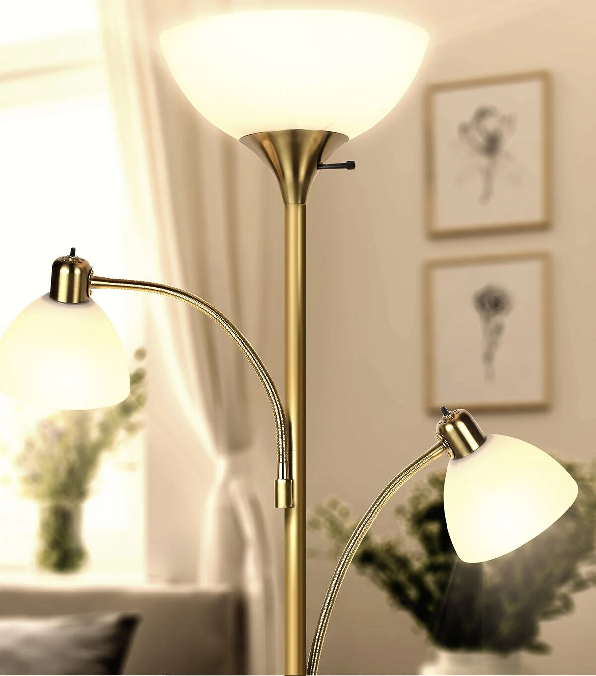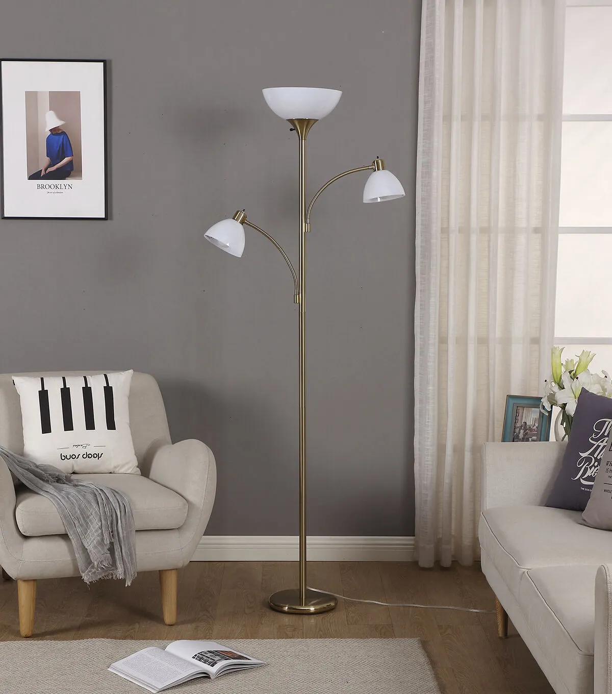 Brightech's Sky Dome Double is perfect for any room! Featuring 3200-Lumens, Brightech's Sky Dome Double is enough to light a large room! This pole lamp stands 72" tall, featuring a sturdy base, a dome lamp shade 11" in diameter, two side dome lamps with 12" gooseneck arms, and a 3-way bulb and built-in dimmer for soft light to optimize the mood. This slender lamp slides unobtrusively into narrow corners, and the base fits beneath your sofa. Brightech Sky Dome Double's unique design matches modern, minimalist, urban, casual, and contemporary décor, perfect for your bedroom, office, or study.