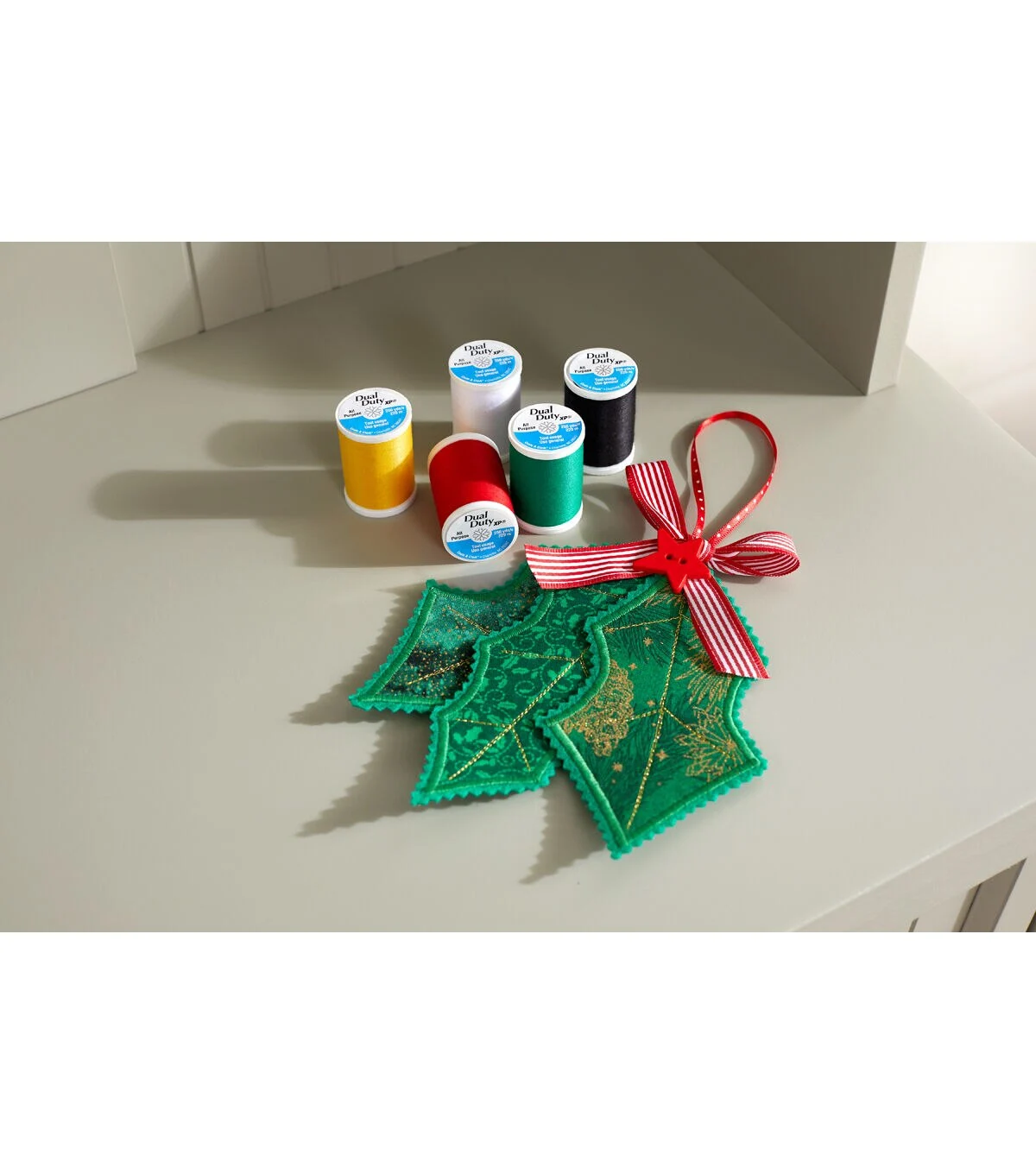 Create wonderful holiday projects with various adorable patterns, using the Coats and Clark Dual Duty XP General Purpose Thread. This exclusive thread pack contains 5 spools of 250 Yard Coats & Clark thread in White, Black, Atom Red, Kelly Green and Spark Gold. Made with advanced technology, this thread features polyester-wrapped core-spun construction that makes sewing easier. The general purpose thread comes with a smooth finish and adds soft texture to your garments, linens and home decor accessories. Ideal for hand-sewing and machine-sewing both, this general thread is a must-have for all of your holiday sewing projects and beyond.