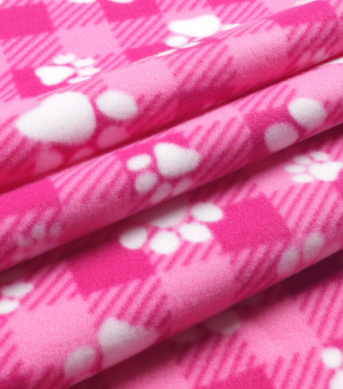 Dog Paw on Pink Buffalo Check Blizzard Fleece Fabric