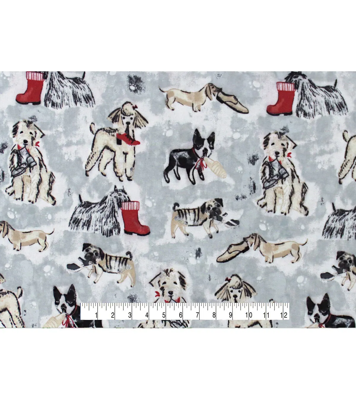 Dog Sketch Gray Super Snuggle Flannel Fabric