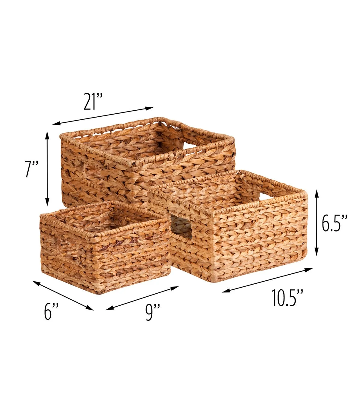 - Baskets nest nicely and range in size for varying storage needs