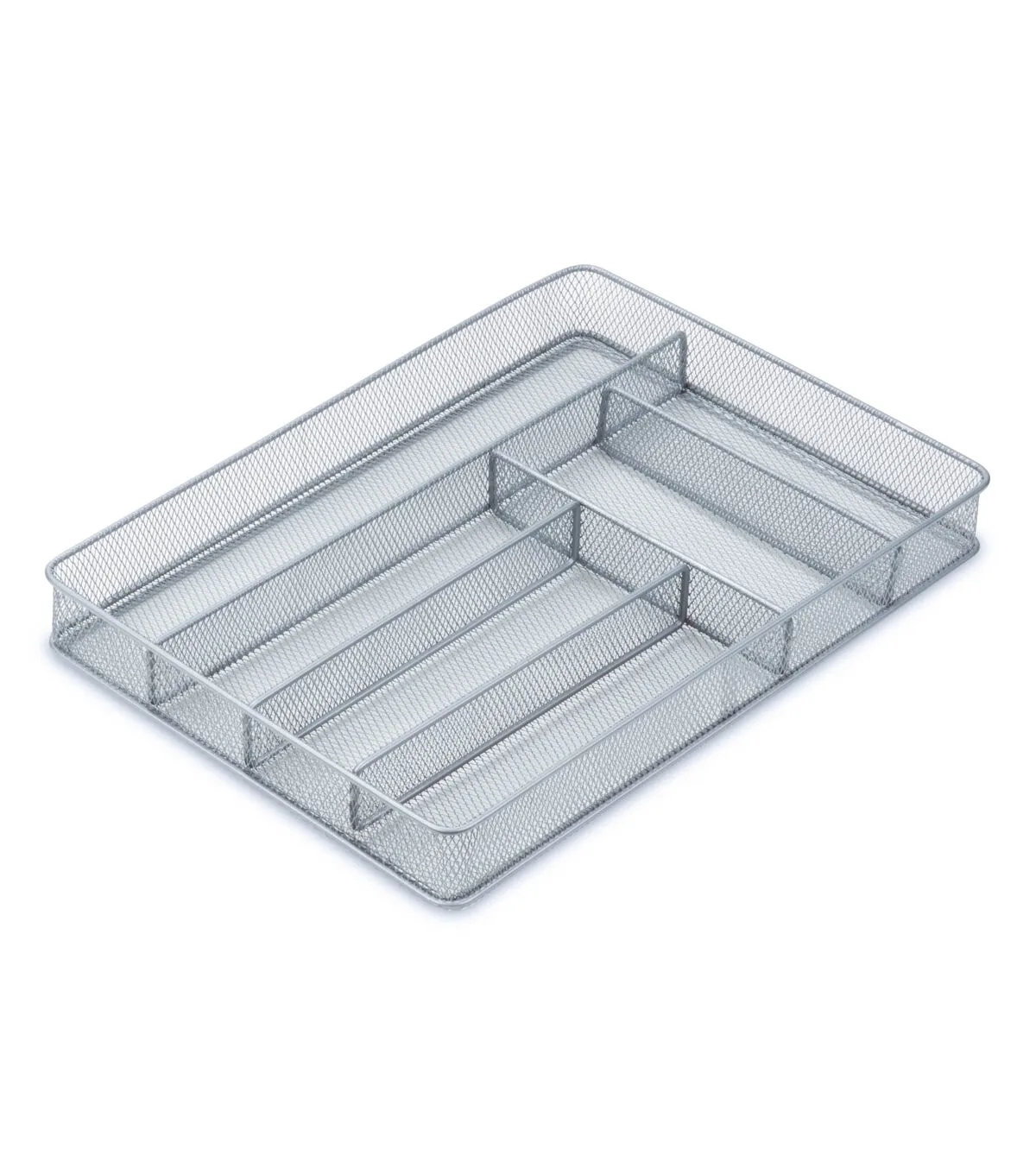 Your kitchen drawers can become quite disorganized, but not for long. This 6-compartment drawer organizer fits all your standard flatware neatly in its own place and still has room for larger items such as serving spoons, spatulas, and more. The mesh construction is easy to clean and the low 2-inch height profile makes it a great desk drawer organizer, too.