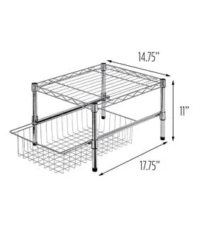 A flexible storage solution that adjusts in height to accommodate tall or shorter items in most cabinets. Also good for pantry organization, the contemporary design and brilliant chrome finish present a polished look when you open your cabinets. Handy and sizable, the wire basket pulls out for easy access to anything from food items to under-the-sink cleaning supplies. This shelf works best in cabinets that are 18 inches wide or larger.