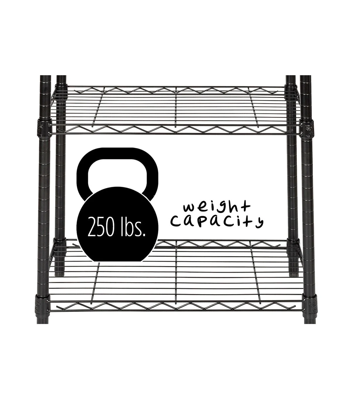 You were looking for new closet storage ideas when your sweaters requested a sit down with you. Not only did they ask you to stop putting them on hangers, but they suggested you straighten up your shoe collection, too. That’s when you decided it was time to restore order to your closet with this 3-Tier Heavy Duty Adjustable Black Shelving Unit. Its commercial-grade durability is tough for any of your kitchen shelving needs, or to tame your wardrobe gone wild, while its steel grated shelves allow your garments plenty of breathing room. Easy to assemble and versatile, this adjustable shelving unit also straightens up messes in your basement or garage.