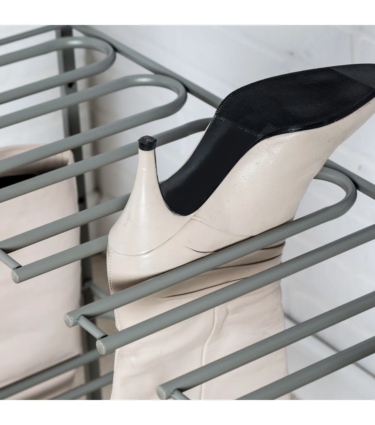 Few things can foul up good footwear like excessive water. Even the sturdiest of footwear, like boots, need a good airing out after splashing through puddles, gardening in muddy soil, or clomping along snow-lined sidewalks. This boot storage rack is especially made for right after such an outing. Individual slots can rack up to six pairs of mid- to full-length boots, like leather fold-overs or rubber wellingtons. And a black base underneath resists water, catching whatever drips or drops from a boot heel or shaft, while protecting floors or carpets underneath.