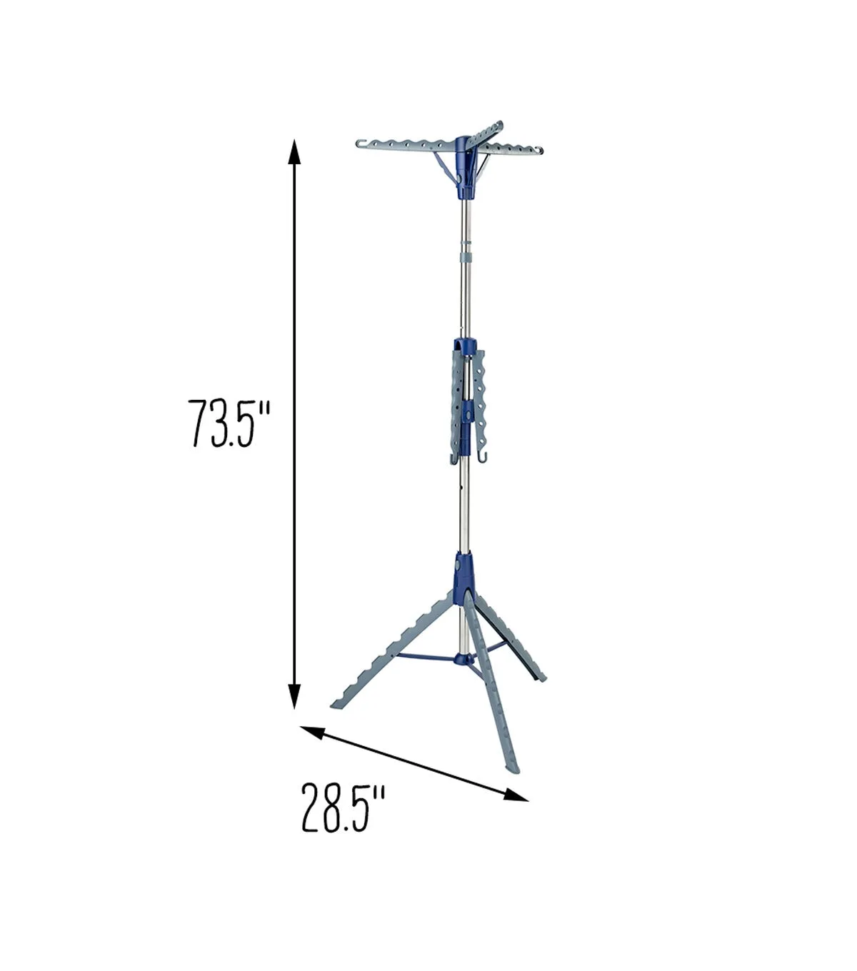 This tripod clothes drying rack is for people who like to line-dry clothes, but who don’t like the line aspect of the process. A clothes line can impart awkward creases onto a sweater or shirt. Or if a breeze blows, a delicate camisole can fall off the line, crumpling into a wrinkled heap on the floor. With this 2-tier tripod drying rack, both of those scenarios are unlikely, since the rack doesn’t rely on a line; but rather, smooth ridges that cradle up to 30 hanger hooks. If a button-up shirt is firmly fixed on a hanger, then it should remain firmly afloat, fluttering in the breeze nearly six feet off the ground from the rack’s extendable top tier. When the drying is done, the rack neatly collapses for easy storage.