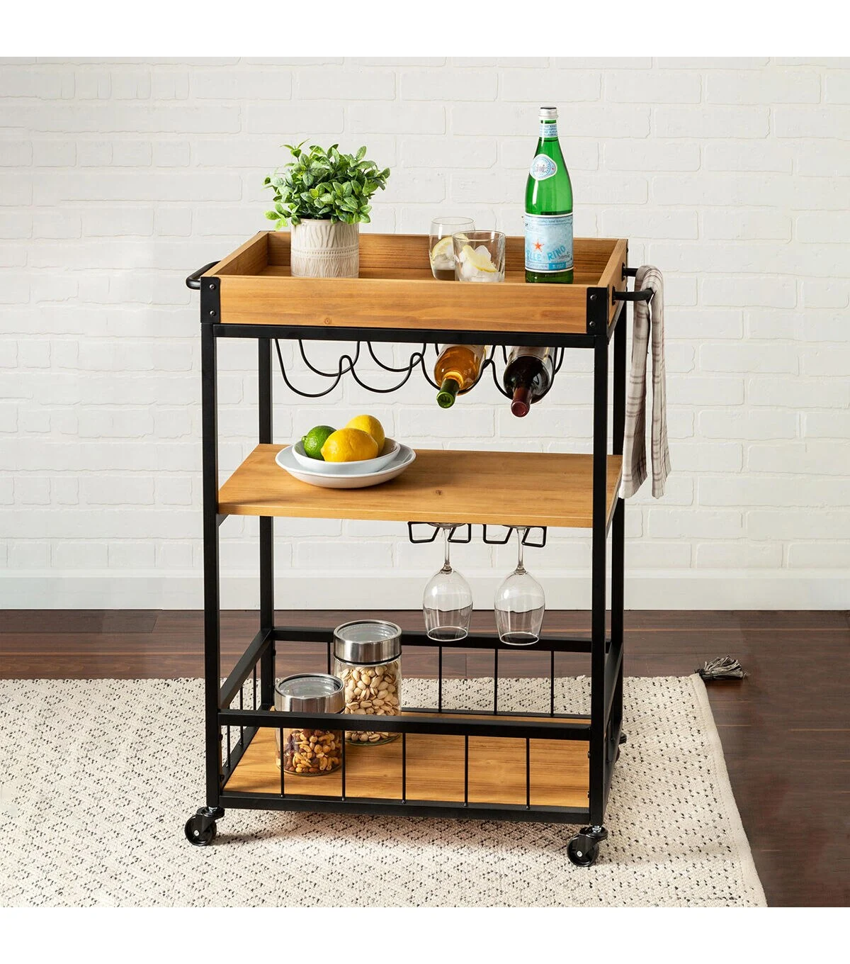 - Wheels make bar cart easy to move from room to room, lock for stability