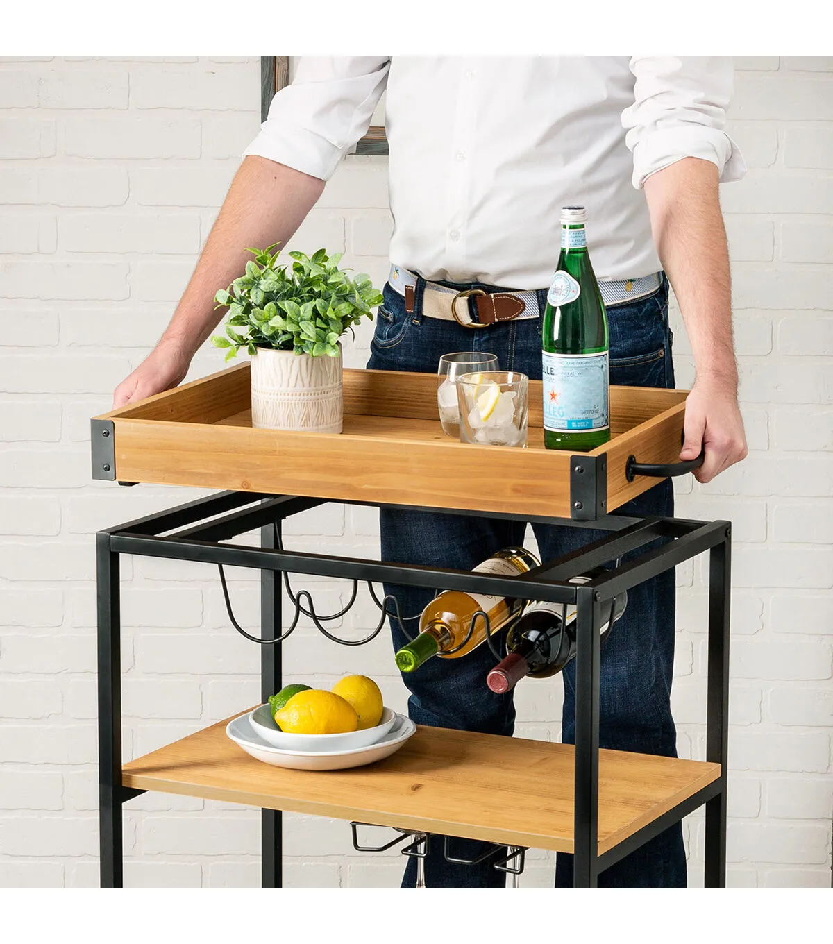 Let this industrial bar cart be the life of the party as a rolling bartender. Its removable tray top lets you take the snacks right to your guests and there’s extra storage in this kitchen cart for up to four bottles of wine and stemware, too. Durable with wheels that not only glide smoothly, but lock for stability.