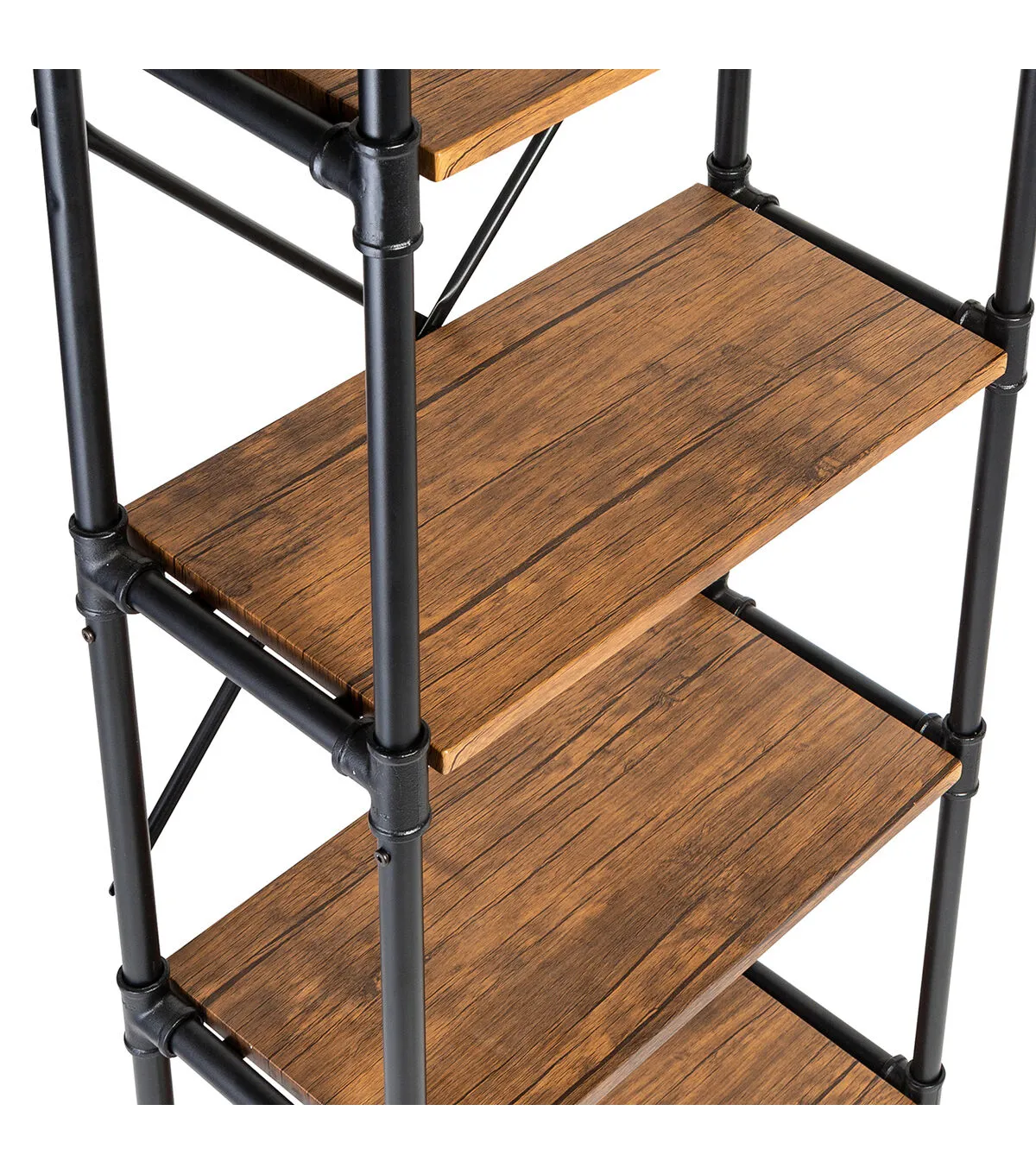 No matter the room, this black bookshelf brings not only function, but loads of design cache. With a weight capacity of 50-lbs per shelf, it can stand up to your kitchen, living room or bathroom needs, and with its sleek black piping frame and rich brown shelves, it’ll leave you oooh’ing and ahh’ing every time you walk in the room.
