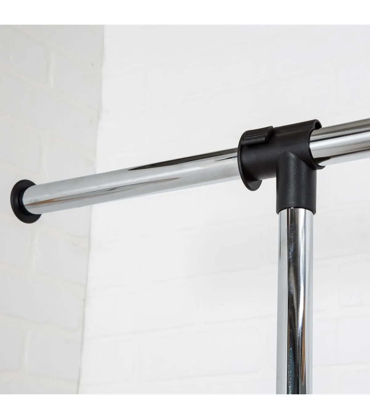 This clothes rack is adjustable in more ways than just sizing its rods up and down. Granted, that’s a handy feature. But we mostly appreciate how this portable clothes rack can adjust to many circumstances. With its locking caster wheels, we move this into the bedroom the night before a presentation to try out outfits. On laundry day, it’s rolled onto the patio for delicates to air-dry. When we’re entertaining, this double clothes rack is at the entryway for guests to hang their coats. And those are just a few of our faves. How will this garment rack adjust for you?