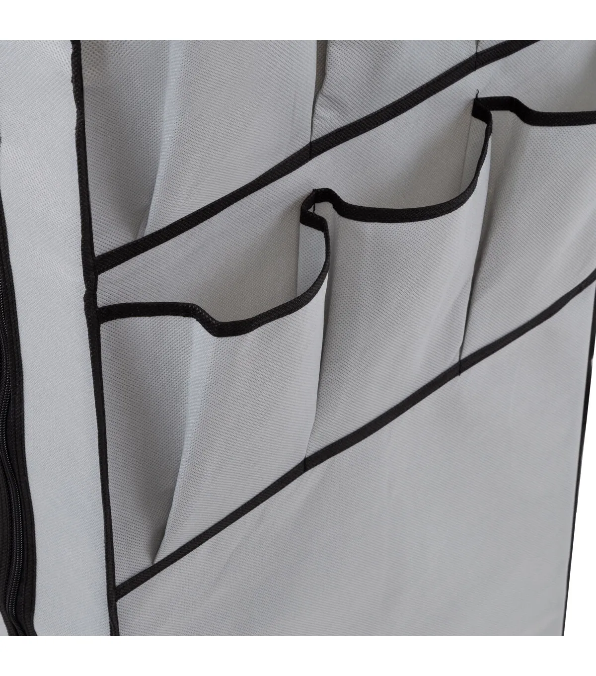 - Twelve side storage pockets for tucking in shoes, handbags, or other accessories