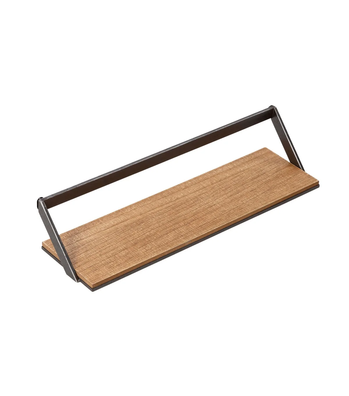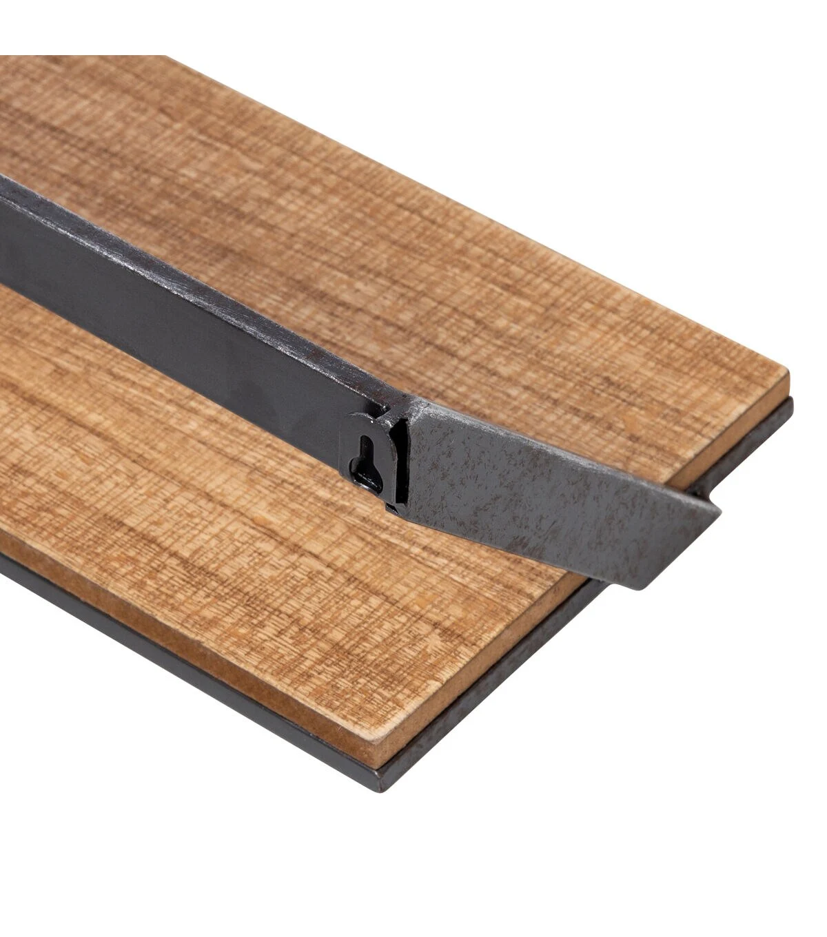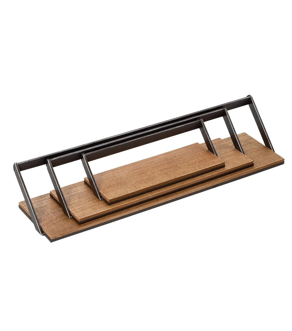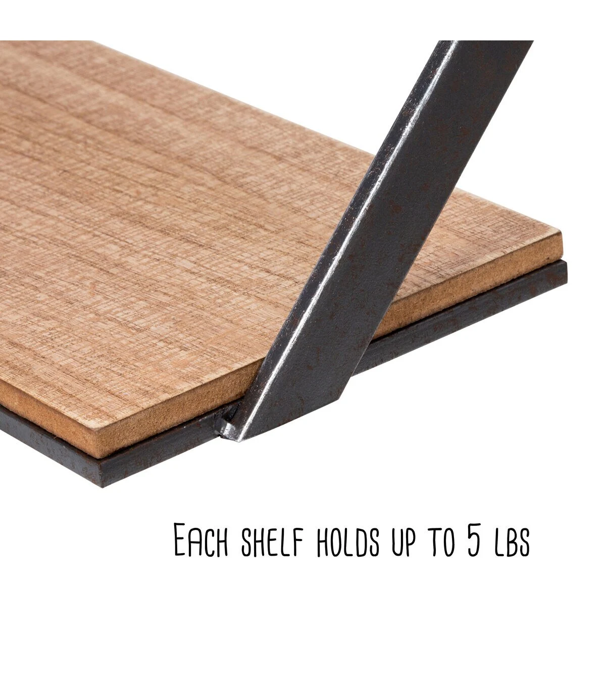 These shelves are for things that brighten and bring joy to a space. Think framed photos that freeze unforgettable moments from family vacations, funky ceramics that pot interesting succulent house plants, or special mementos or heirlooms that harken past adventures. Since they’re floating shelves, they lend a lighter presence on a wall than a traditional bracketed shelving unit. Even with a sturdy mixed metal and wood construction, these aren’t shelves for volumes of heavy tomes. Instead, select those special items that pair well together on the set’s large or medium shelf, or let an extra sentimental object shine solely in the spotlight on the small shelf.