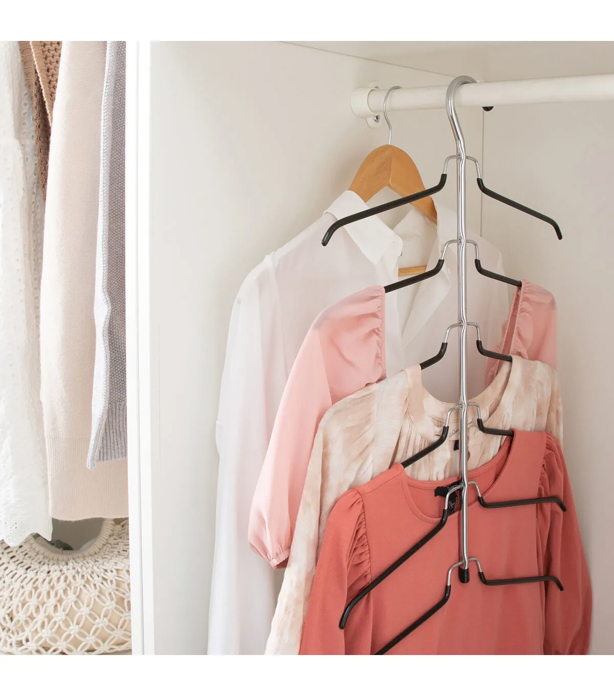 Maximize the space in your closet with the Organize It All Tree Blouse Hanger. Made up of 6 tiers, this hanger allows you to hang 6 blouses or dress shirts that maximizes vertical space by using only one hanger. Designed to hold the blouses and prevent creases and wrinkles while the garments hang in your closet. The nice chrome finish will give your closet a sleek uniformed look.
