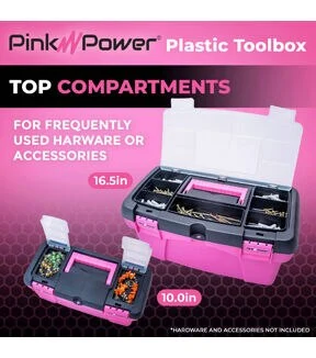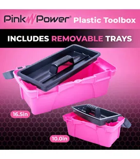 - WHAT'S INCLUDED: (1) 16.5" Large pink toolbox with dual compartment lid and interior tray; (1) 10" pink mini tool box for women with interior tray; and a full three-year warranty.