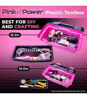 - LIGHTWEIGHT AND DURABLE: Large tool box is lightweight and measures 16.5" x 9" x 8", and the small toolbox measures 10" x 5" x 4". Both are durable for heavy power tools & accessories or in any collection of your pink tool kit.