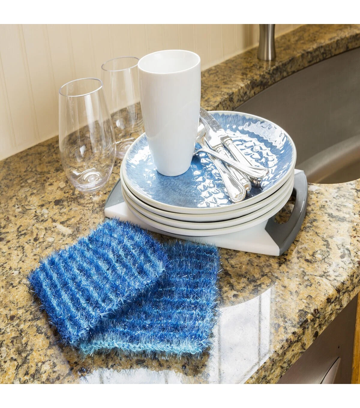 Scrubby has a new friend! Uniquely textured yarn with a sparkle effect gives a new look to your projects. This SParkle Yarn is great for making pan scrubbies, but also works for craft projects.