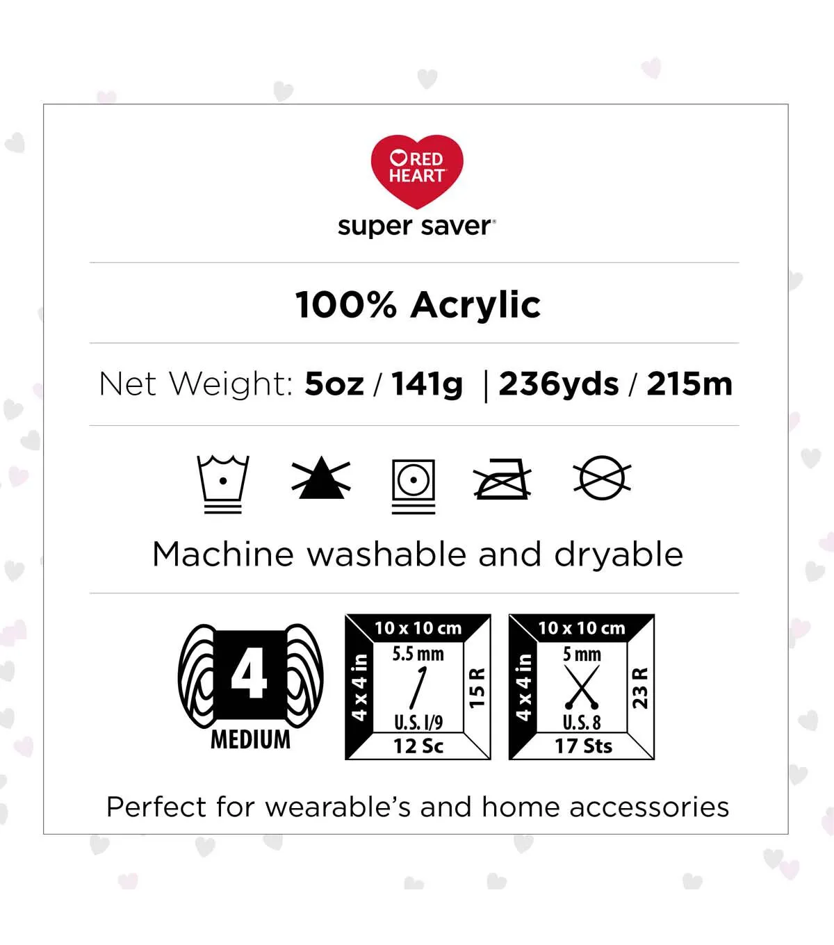 Red Heart Super Saver Brushed has a soft, glowing halo. The brushed acrylic yarn stitches up to create a soft and fuzzy fabric that takes cozy to the next level. Ideal for cuddly wraps, shawls and accessories, Super Saver Brushed creates a fabric with a soft and feathery texture. The worsted weight is suited for projects of all kinds from garments to home décor pieces.