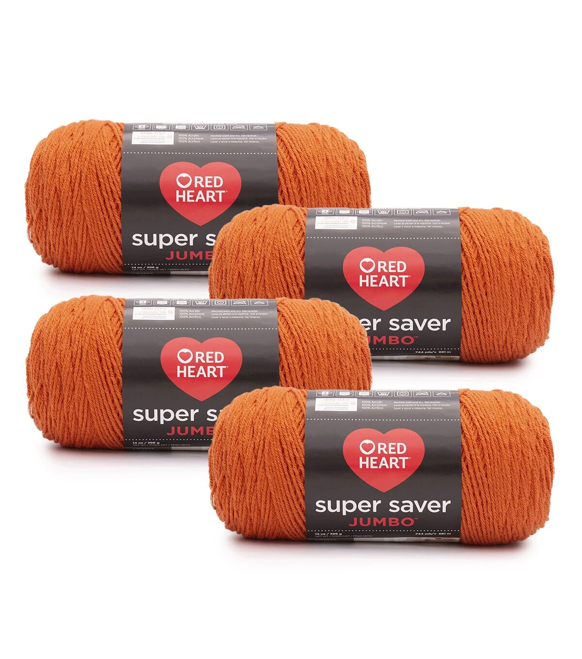 Red Heart Super Saver Jumbo yarn is the same Super Saver yarn you love in larger skeins. Each Super Saver Jumbo skein is the size of two skeins of the regular Super Saver, so you have half as many ends to weave in. Just like Super Saver, Super Saver Jumbo is Made in the USA and has no-dye-lot solids. Super Saver Jumbo is ideal for sweaters, afghans, and other projects requiring large quantities of yarn. This product holds the OEKO-TEX Standard 100 certification.