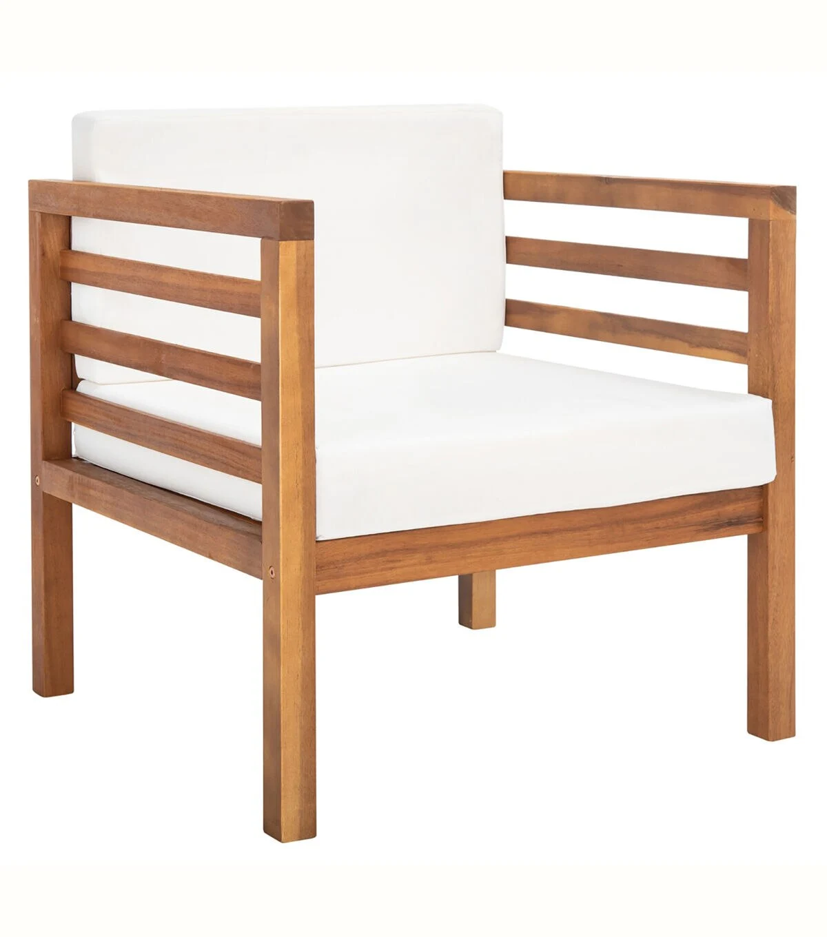 Enjoy the great outdoors in unrivaled comfort with this fabulous Kinnell Armchair. Beautifully styled with a clean-lined wood frame in a warm natural finish, Kinnell��s plush beige cushions provide lasting luxury that stands strong against the elements.