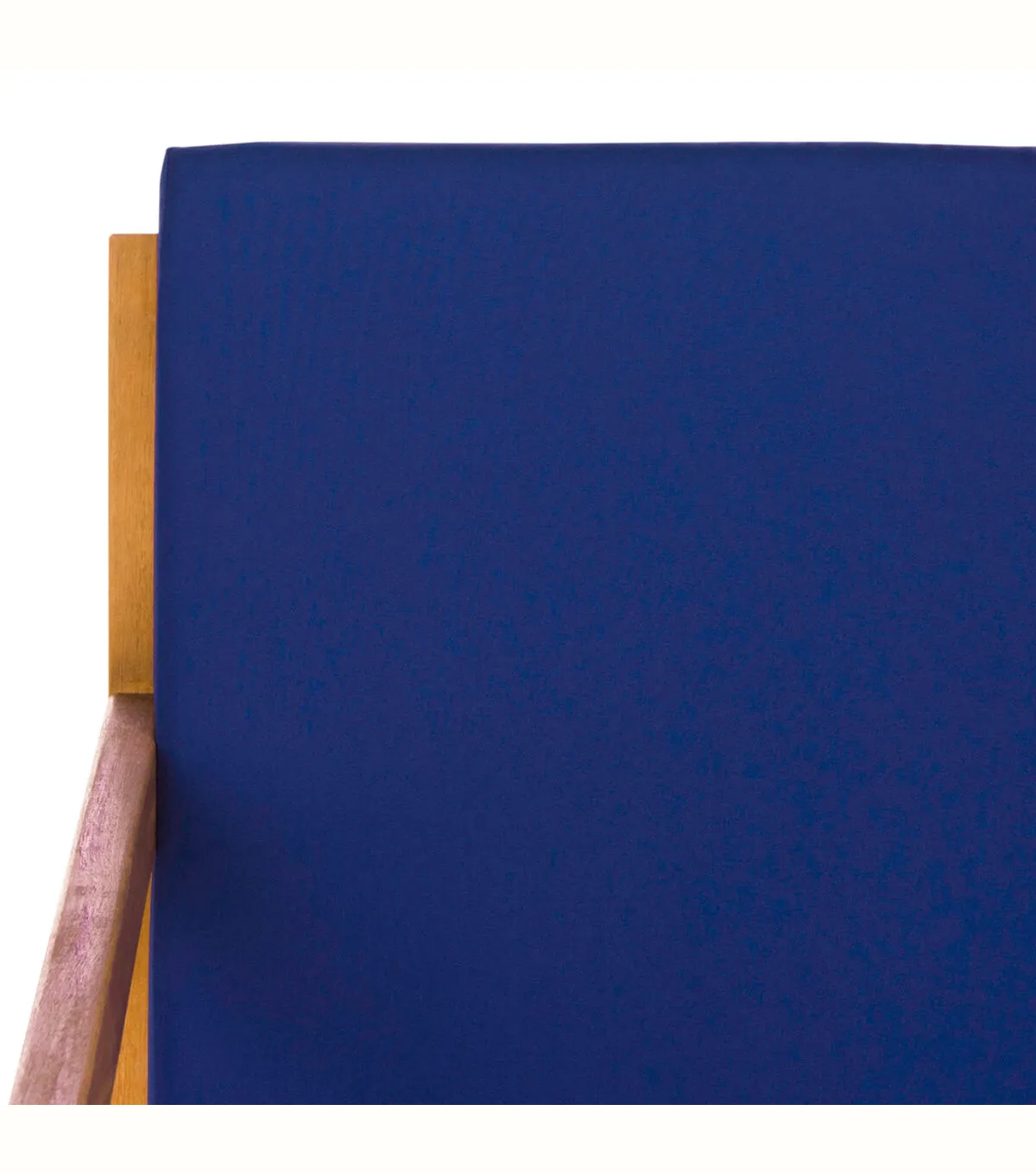 Contemporary with a nod to hand crafted Shaker individuality, this elegant outdoor rocking chair is destined to become a new American classic. Made from eco friendly eucalyptus wood in natural finish, it comes with easy care navy front and back cushions.