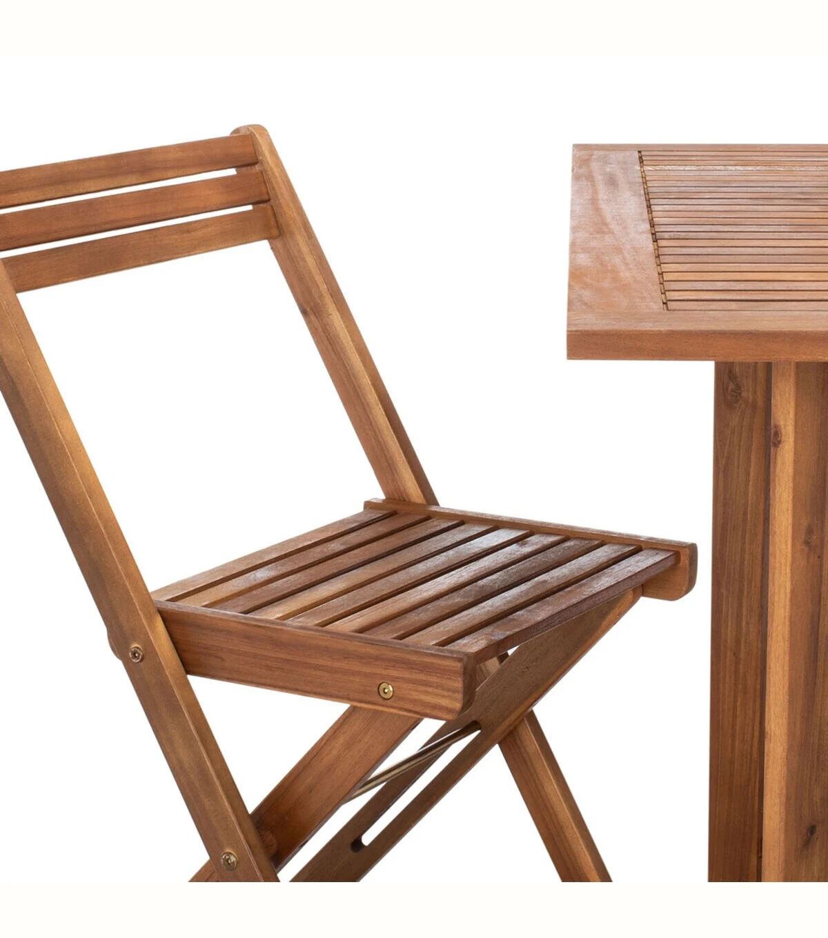 An ingenious space saver, Arvin outdoor dining table and chair set is designed for gracious outdoor living. Crafted of eco friendly acacia wood in natural, its 4 director style chairs fold and tuck under a foldable rectangular table for easy storage.