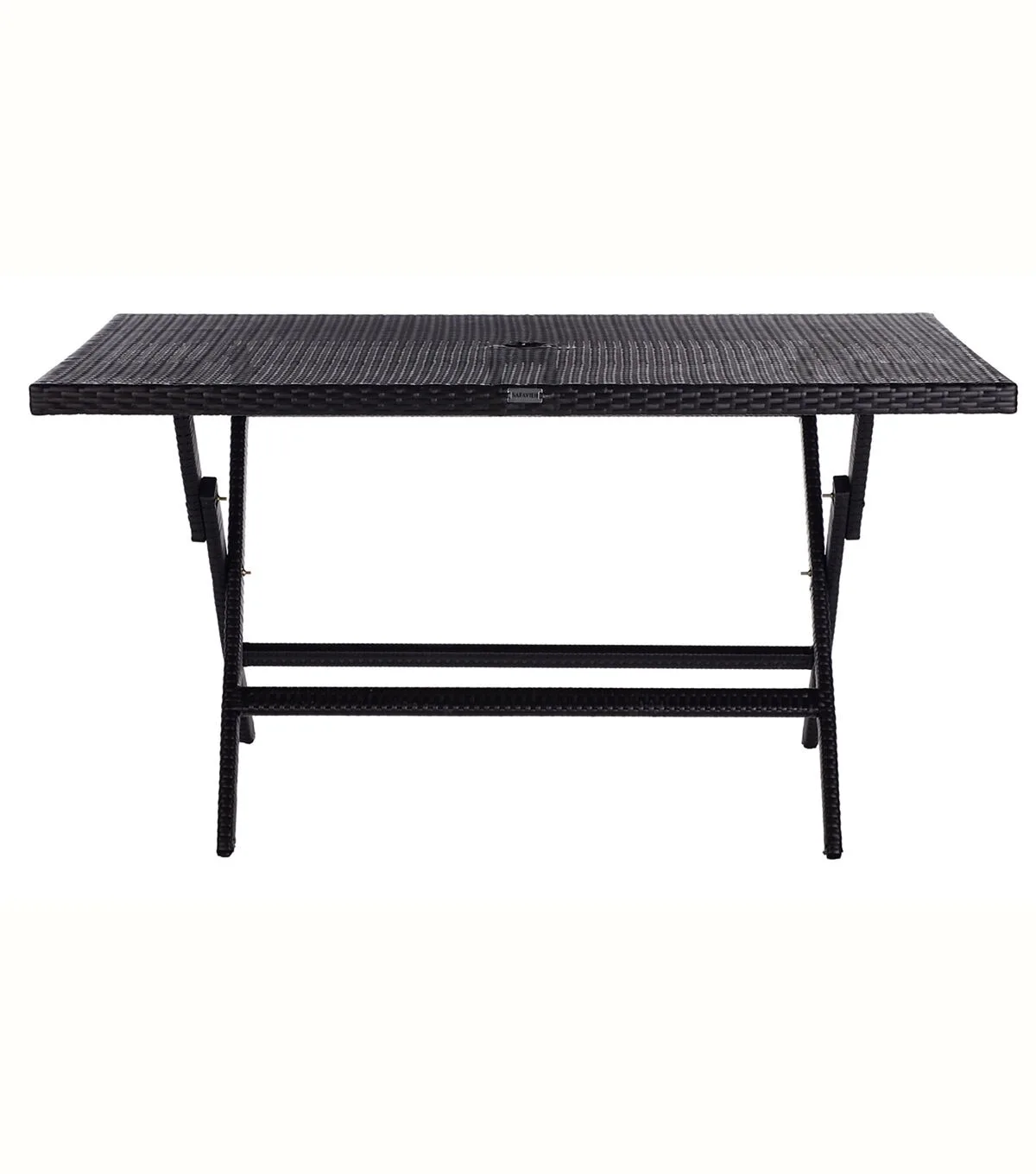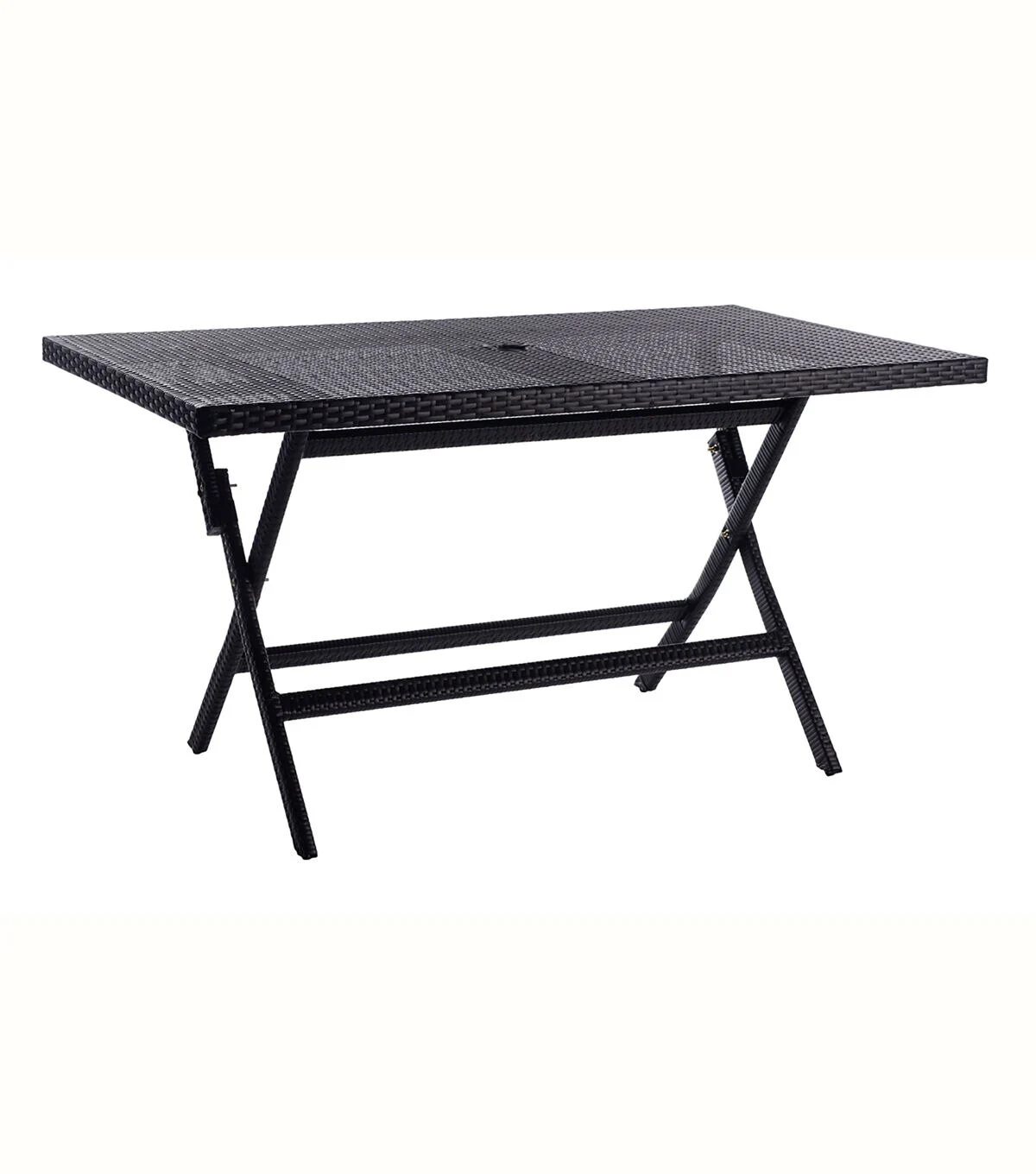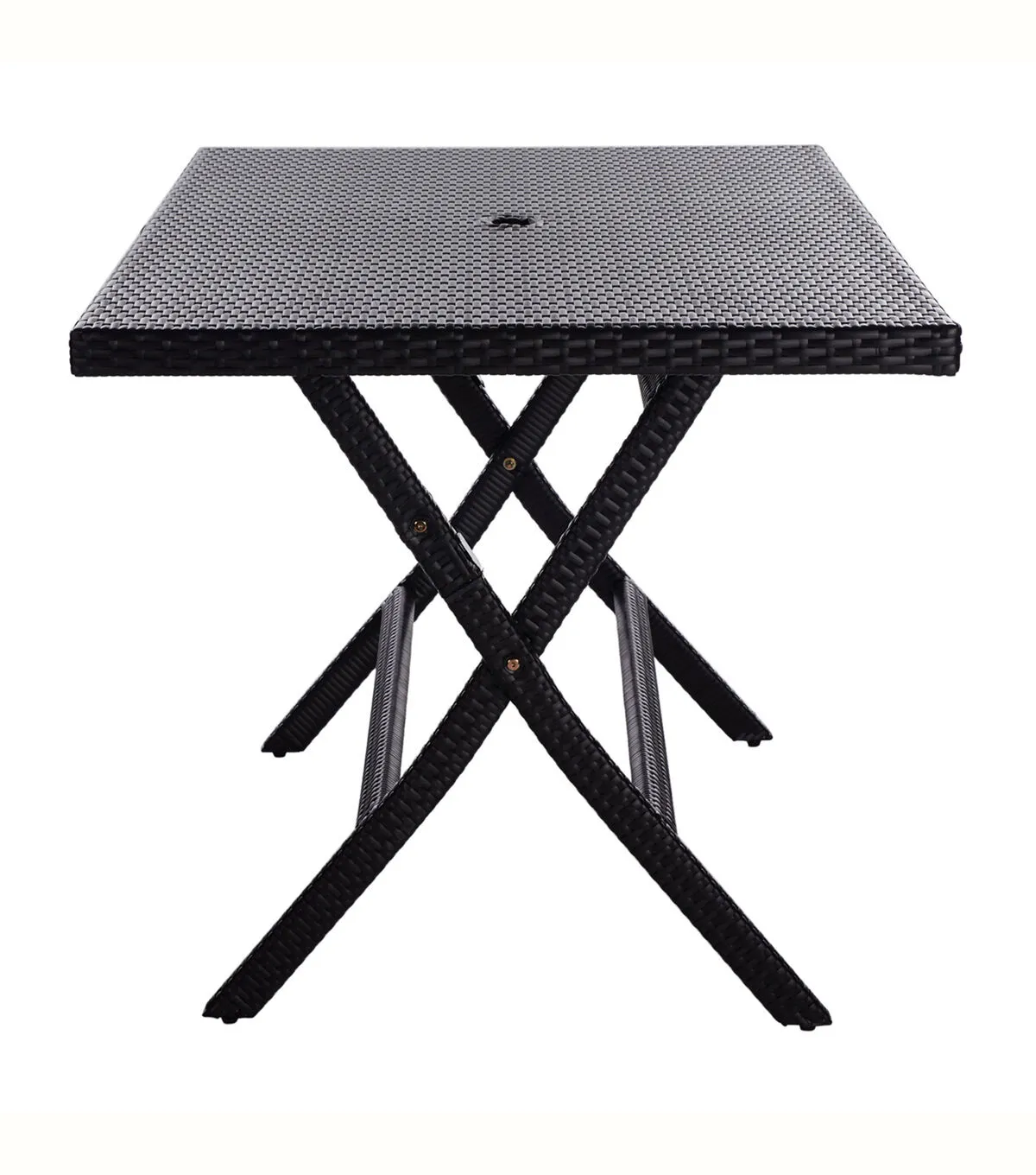 The Akita Table perfectly blends the functionality of a folding table with the high style needed for chic outdoor dining. Styled in forever fashionable black, Akita��s texture rich surface features a cut out in the center for umbrellas, allowing you stay protected from the sun��s harsh rays.