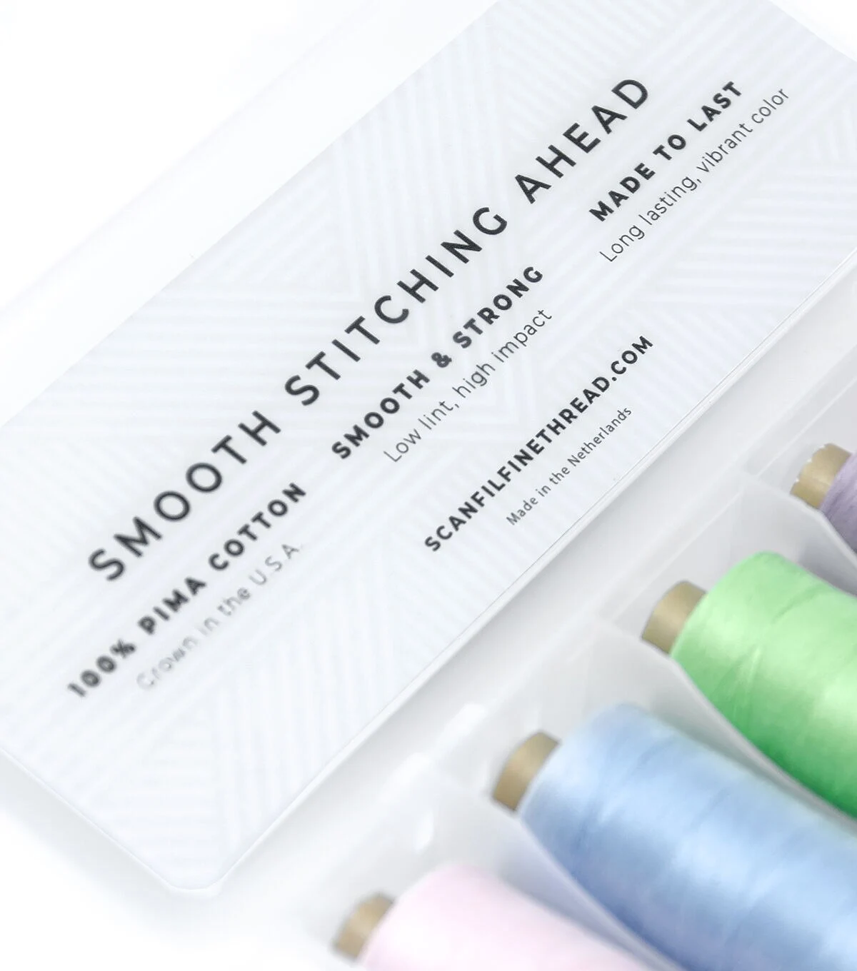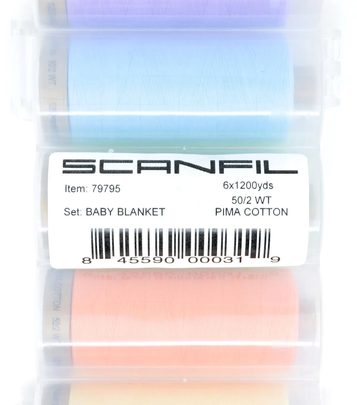 Whether your project is to sew the sure to be treasured welcome new baby quilt, nursery accessories or oh so cute clothes, the SCANFIL Pima Cotton Thread Set with 6 beautiful baby blanket pastels colors is the perfect thread choice. Pima Cotton thread, known to be both super soft and extra strong, will make beautiful strong stitches that are soft against baby's delicate skin and last wash after wash. Each spool has 1200 yards, enough to complete most projects. Packaged in a reusable storage box with 6 compartments that is great for organizing pins, buttons, and other small items.
