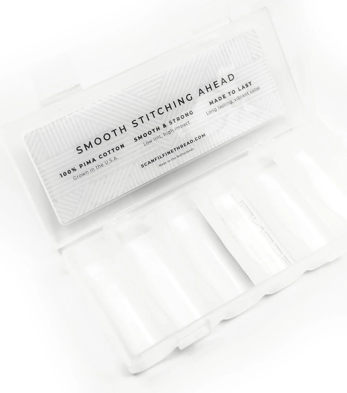 - BEAUTIFUL SEAMS: SCANFIL Pima Cotton extra long staple 50 weight mercerized cotton is the preferred thread by quilters and sewers worldwide because it is very low in lint, smooth and strong for a friendly sewing experience and long lasting seams that will not shrink or bleed with washing. Recommended machine needle size: US 12 / NM 80.