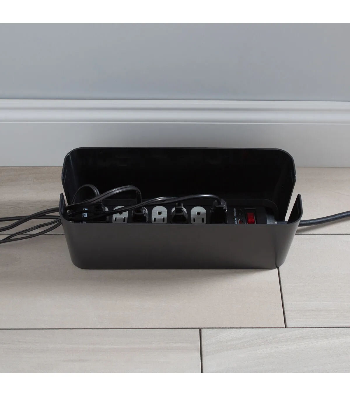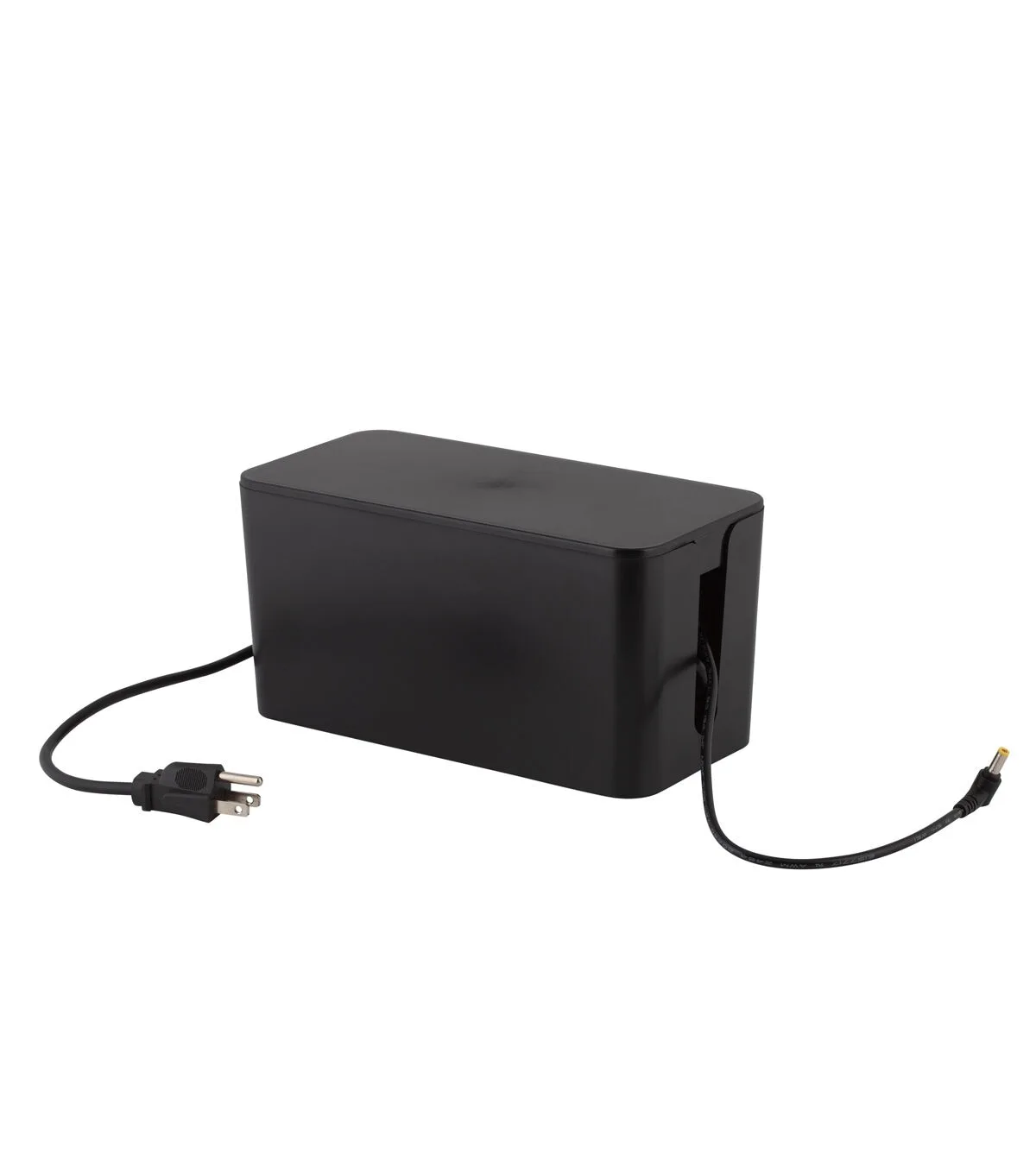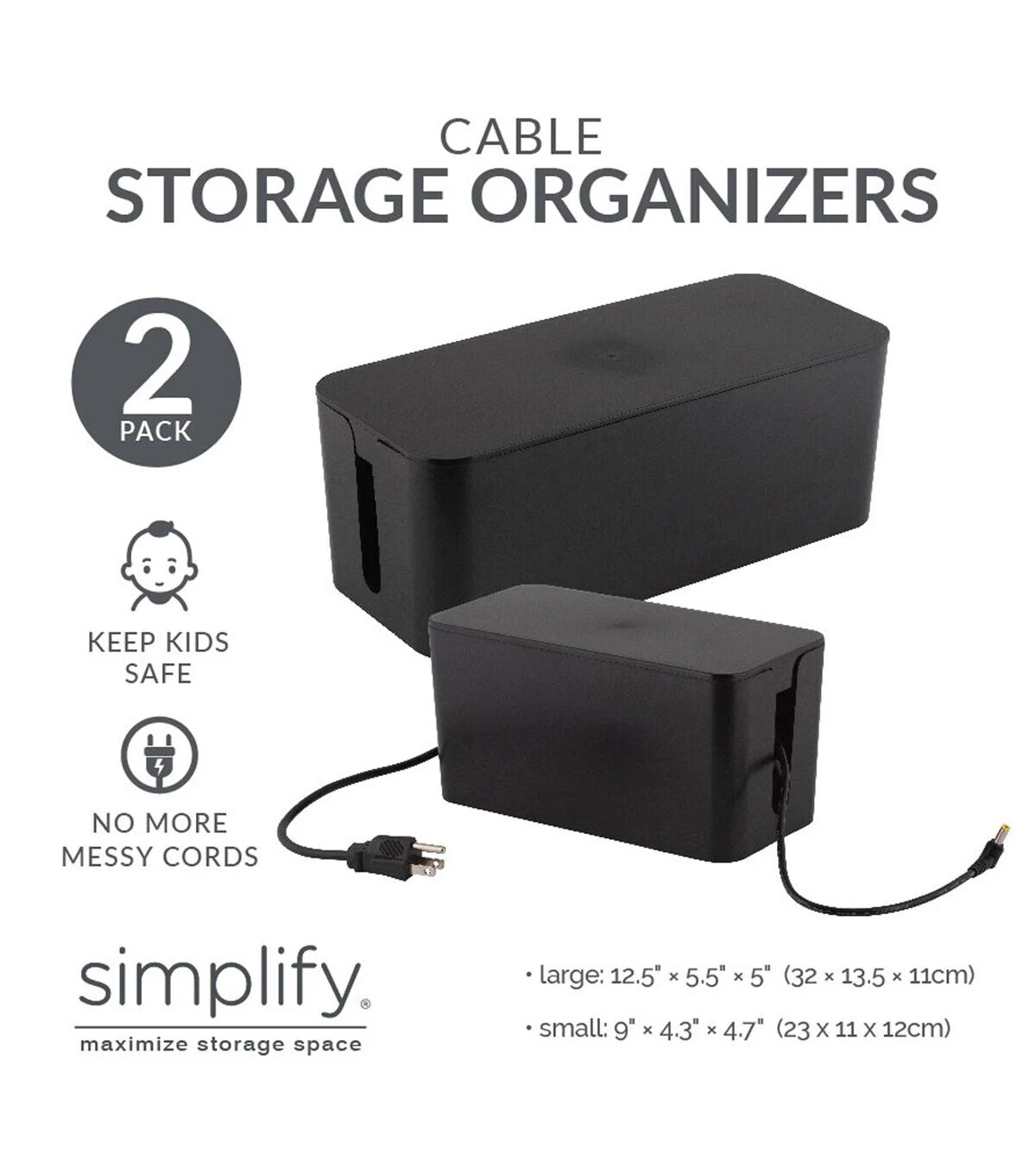The Simplify 2 Pack Cable Organizer Boxes are the perfect way to keep messy cords out of sight. Feed the ends of the cords through the slots in the side of the box then put the lid back on to only expose the amount of cord you need. Keep the box on the floor next to the outlet or hidden behind a piece of furniture. This box keeps all your wires and cords from being exposed on the floor and prevents someone from tripping over them. The large box is perfect for tv and lamp cables. The small box is the perfect size to fit on your desk to hold phone chargers. Your room will look more organized once all of the cords are hidden away.