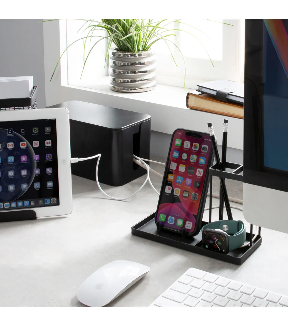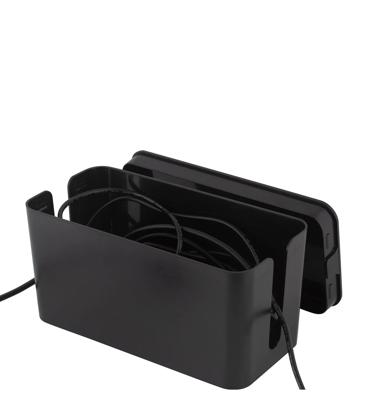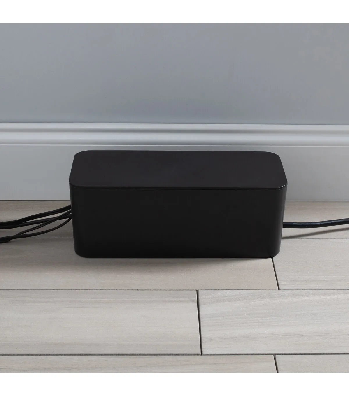 The Simplify 2 Pack Cable Organizer Boxes are the perfect way to keep messy cords out of sight. Feed the ends of the cords through the slots in the side of the box then put the lid back on to only expose the amount of cord you need. Keep the box on the floor next to the outlet or hidden behind a piece of furniture. This box keeps all your wires and cords from being exposed on the floor and prevents someone from tripping over them. The large box is perfect for tv and lamp cables. The small box is the perfect size to fit on your desk to hold phone chargers. Your room will look more organized once all of the cords are hidden away.