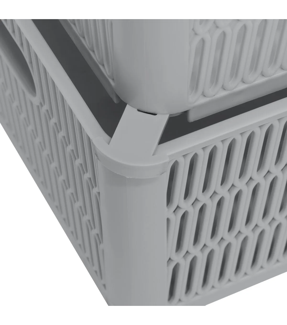 Maximize your storage space with the Simplify Slide 2 Stack It Storage Tote Baskets. Created with a patented slide to stack design which provides slide out corner support that allow the totes to be safely stackable. Storage totes hold up to 40lbs while stacked, allowing you to maximize your storage in closets, cabinets, shelves and more. The totes neatly nest inside when not in use. Organizing just became easier with the Simplify slide 2 stack it totes!
